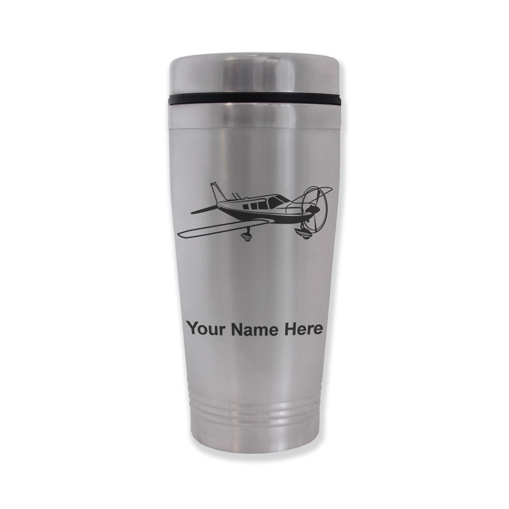Commuter Travel Mug, Low Wing Airplane, Personalized Engraving Included