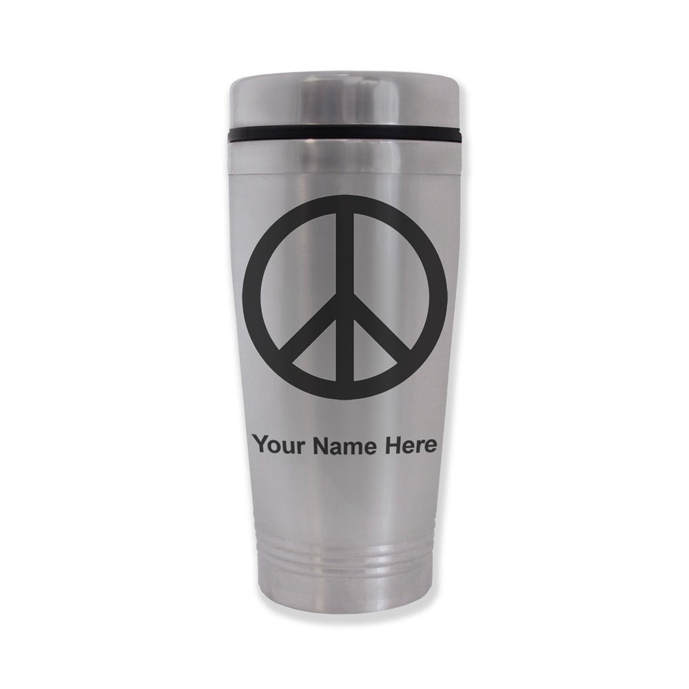 Commuter Travel Mug, Peace Sign, Personalized Engraving Included