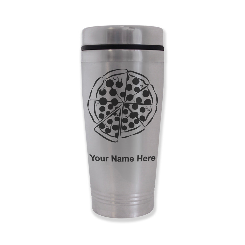 Commuter Travel Mug, Pizza, Personalized Engraving Included