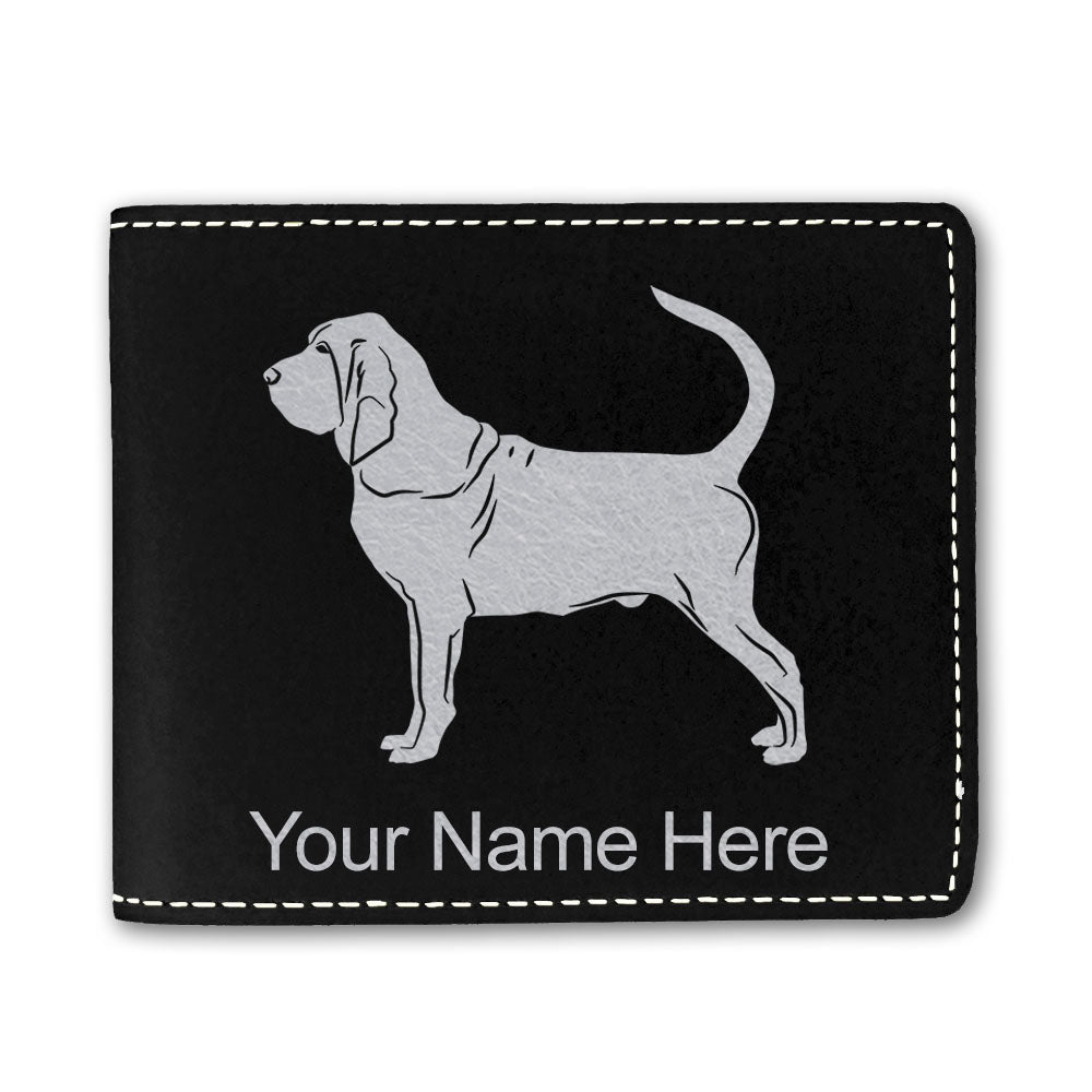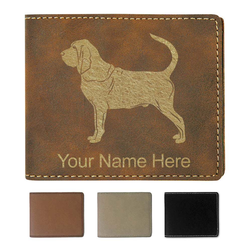 Faux Leather Bi-Fold Wallet, Bloodhound Dog, Personalized Engraving Included