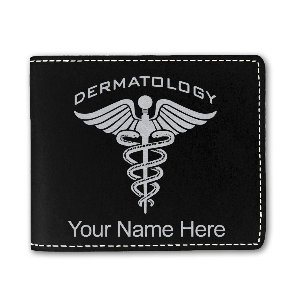 Faux Leather Bi-Fold Wallet, Dermatology, Personalized Engraving Included