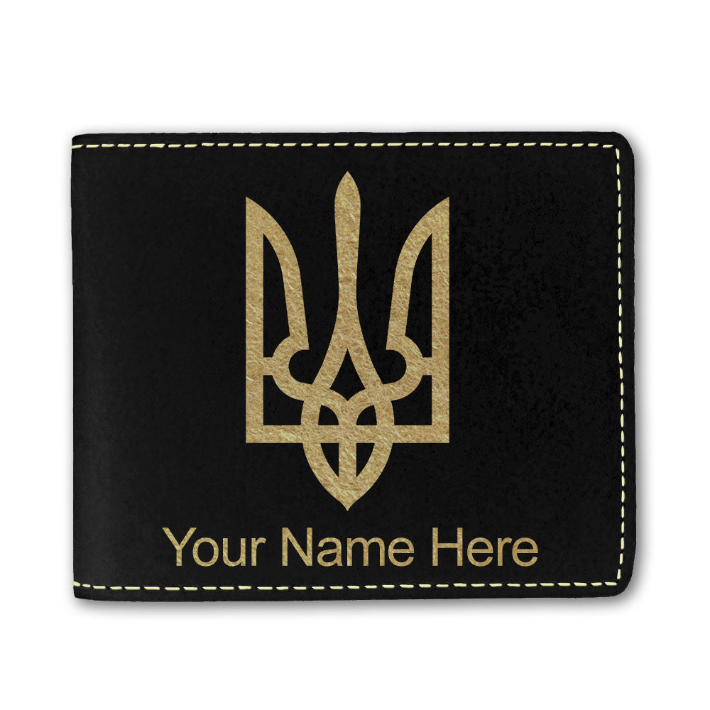 Faux Leather Bi-Fold Wallet, Flag of Ukraine, Personalized Engraving Included