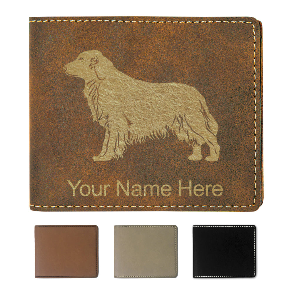 Faux Leather Bi-Fold Wallet, Golden Retriever Dog, Personalized Engraving Included