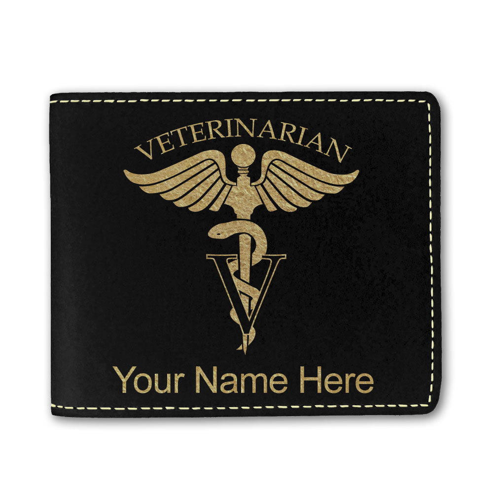 Faux Leather Bi-Fold Wallet, Veterinarian, Personalized Engraving Included