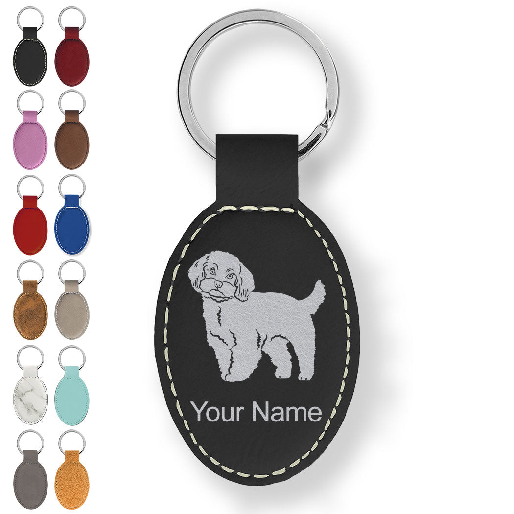Faux Leather Oval Keychain, Maltese Dog, Personalized Engraving Included