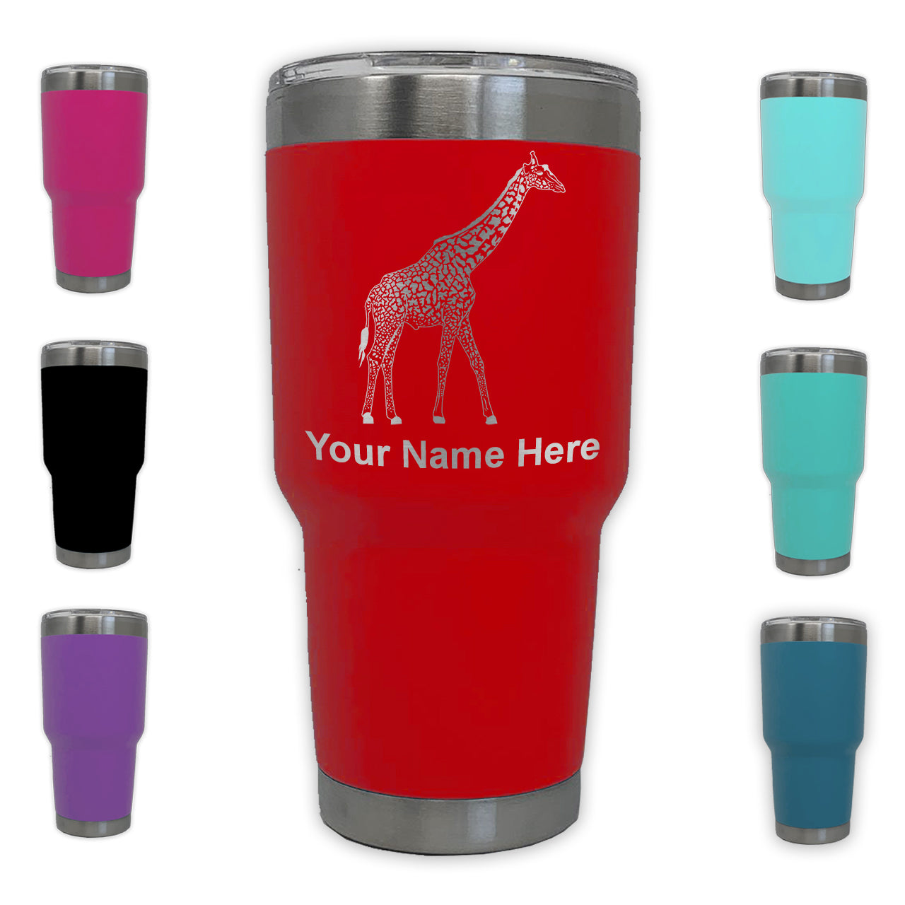 LaserGram 30oz Tumbler Mug, Giraffe, Personalized Engraving Included