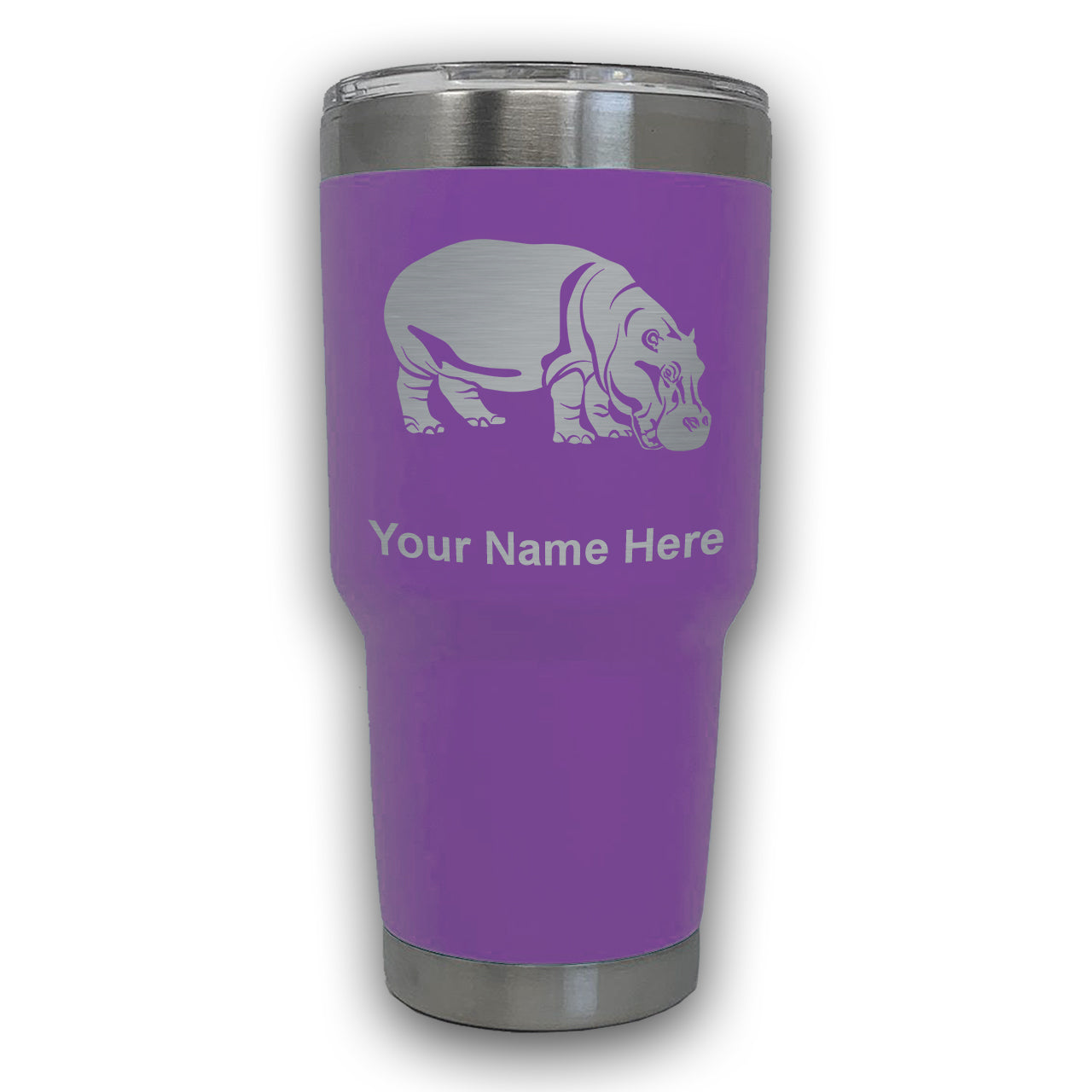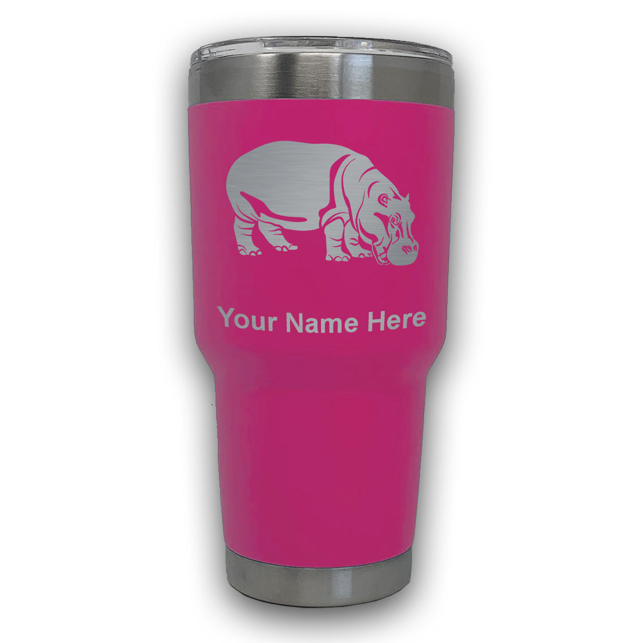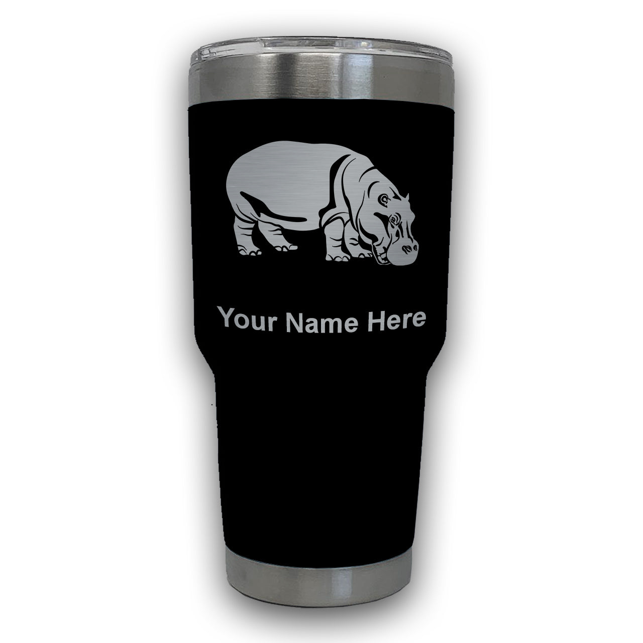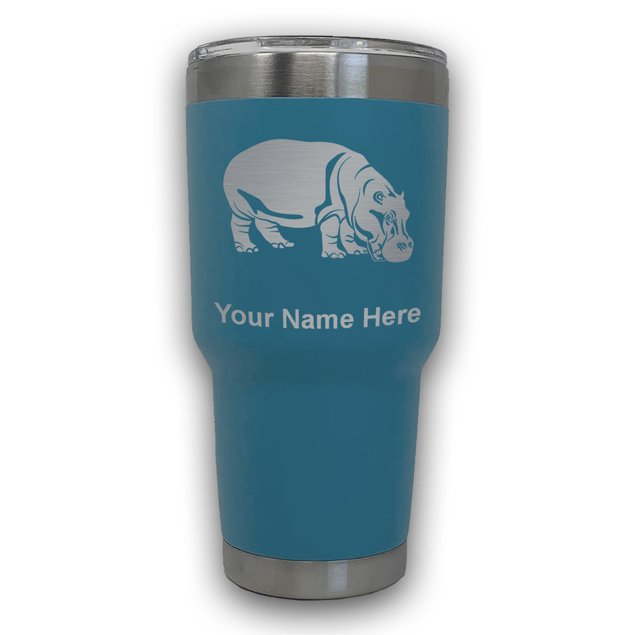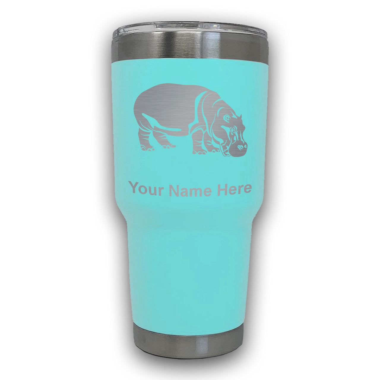 LaserGram 30oz Tumbler Mug, Hippopotamus, Personalized Engraving Included