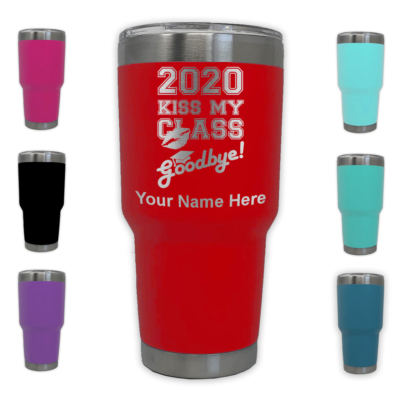 LaserGram 30oz Tumbler Mug, Kiss My Class Goodbye 2020, 2021, 2022, 2023, 2024, 2025, Personalized Engraving Included