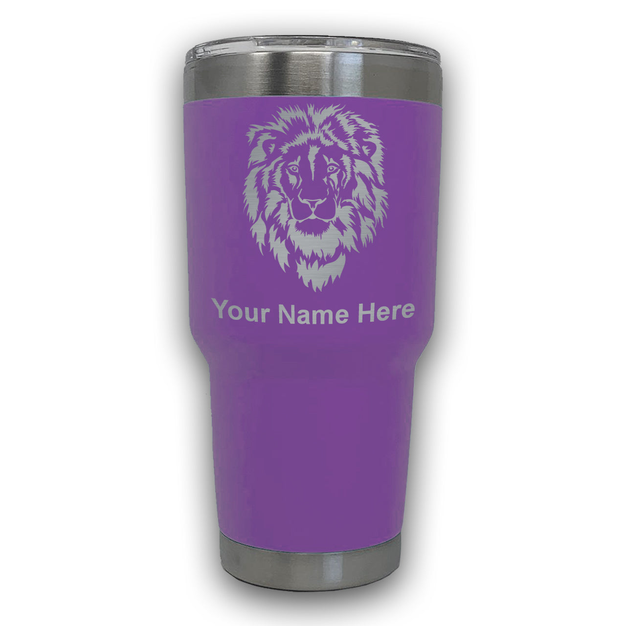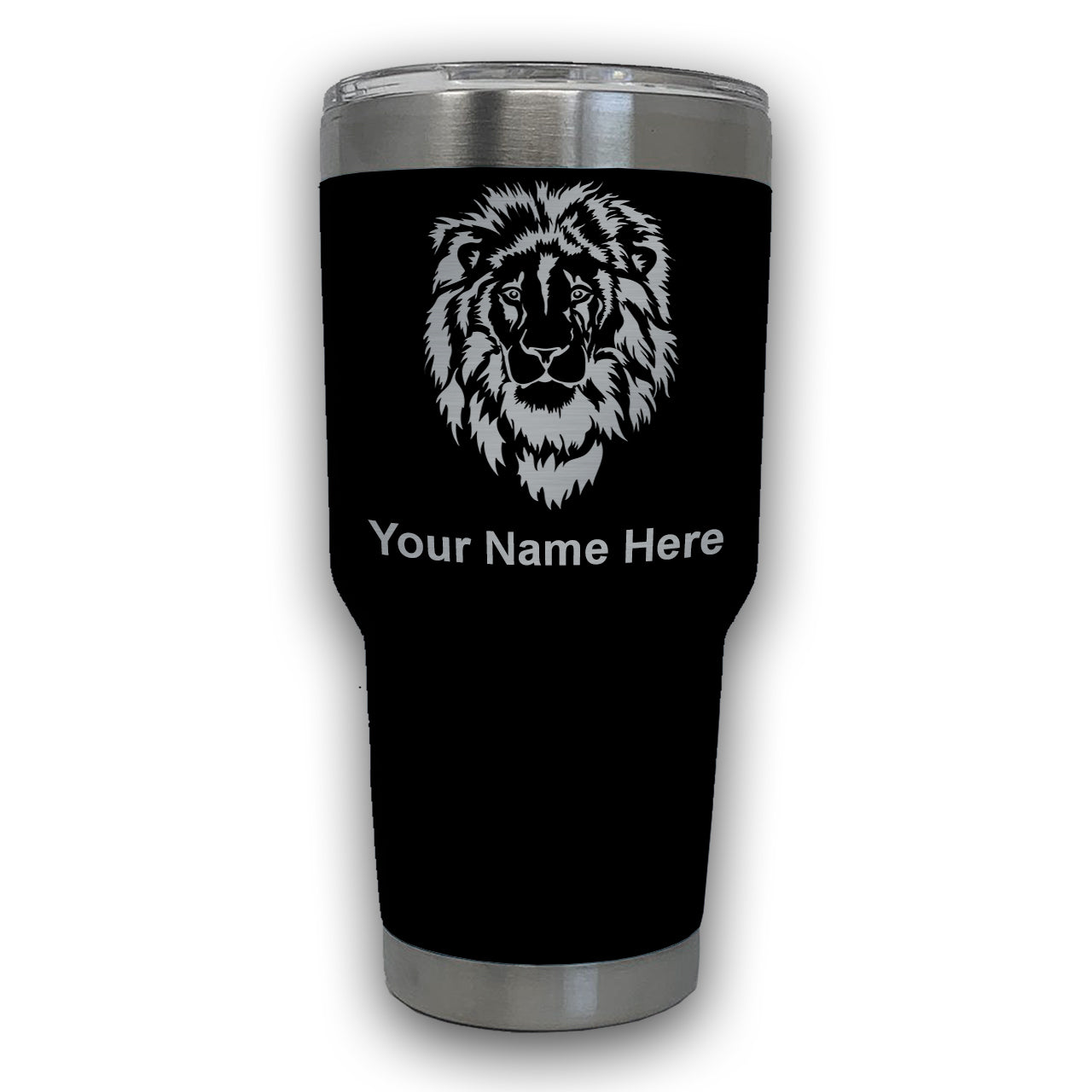 LaserGram 30oz Tumbler Mug, Lion Head, Personalized Engraving Included