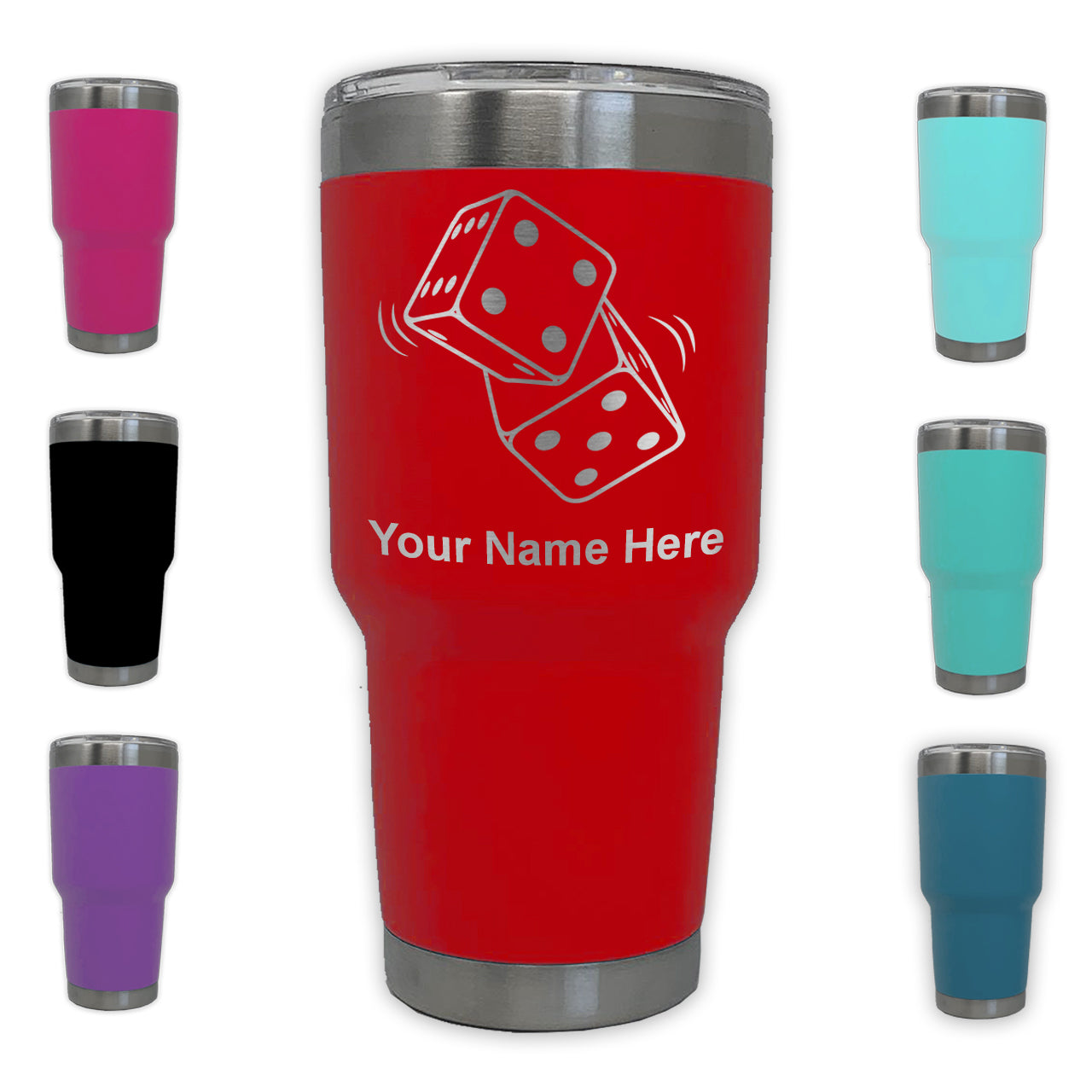 LaserGram 30oz Tumbler Mug, Pair of Dice, Personalized Engraving Included