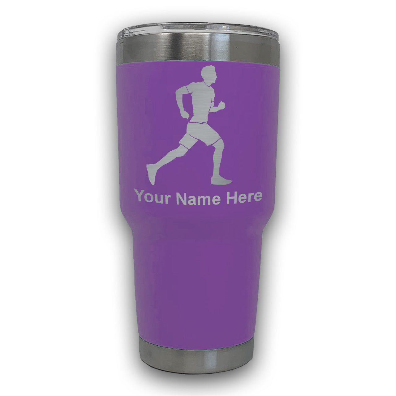 LaserGram 30oz Tumbler Mug, Running Man, Personalized Engraving Included