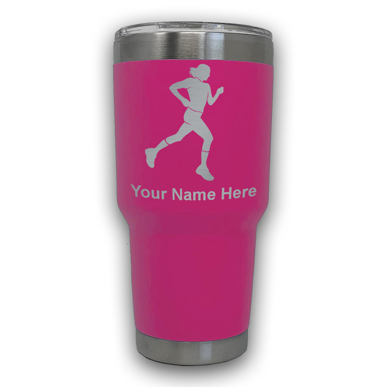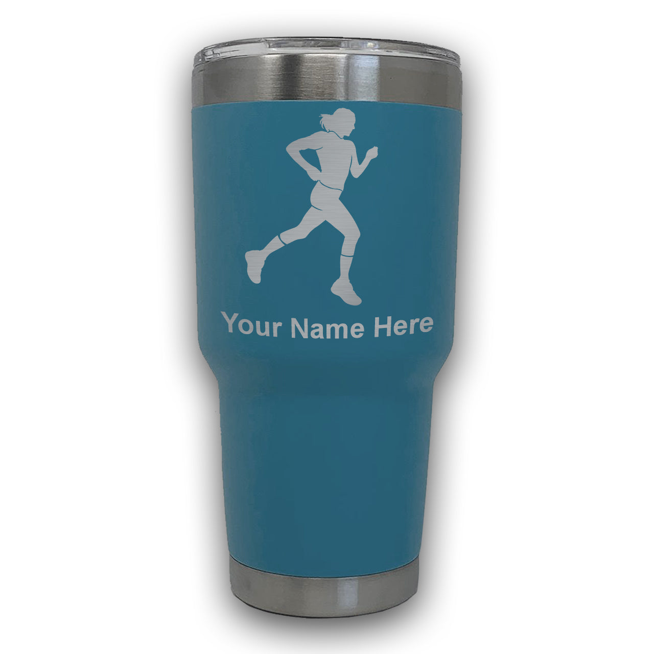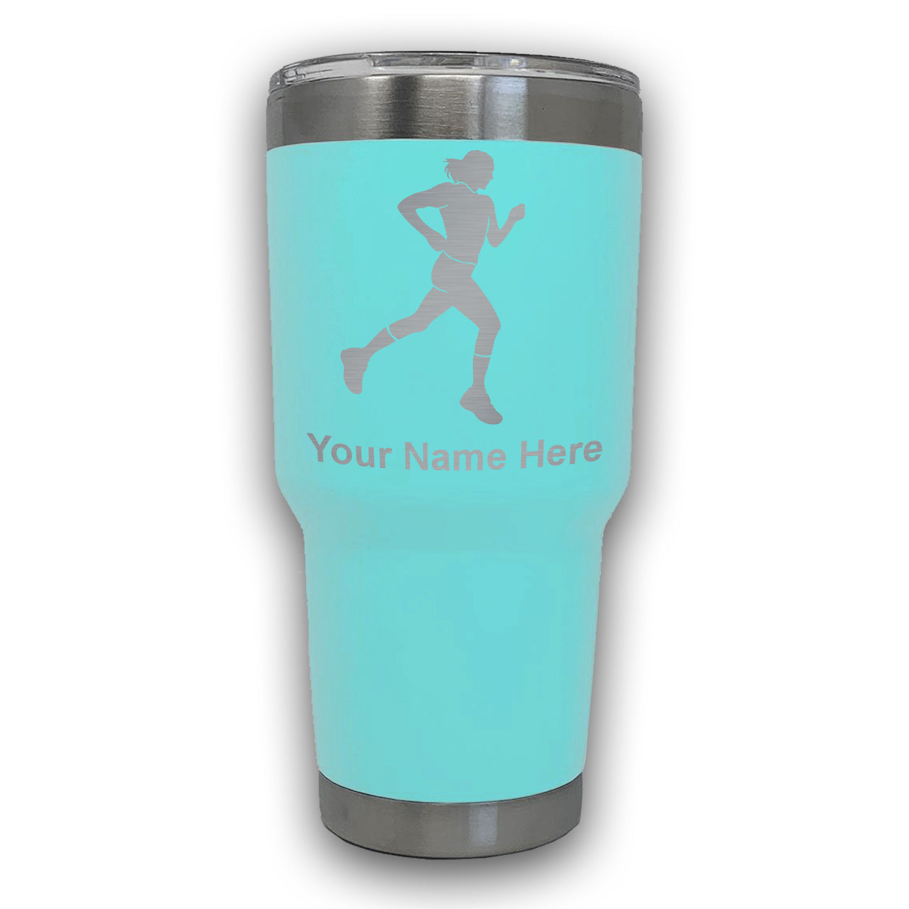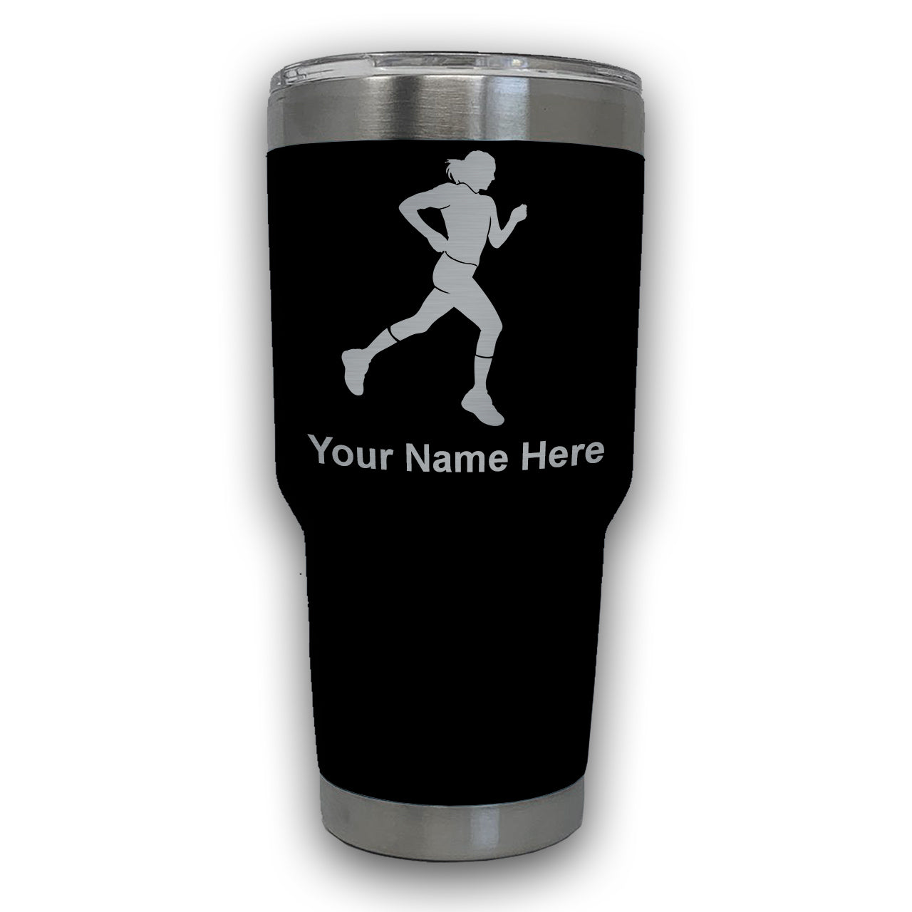 LaserGram 30oz Tumbler Mug, Running Woman, Personalized Engraving Included