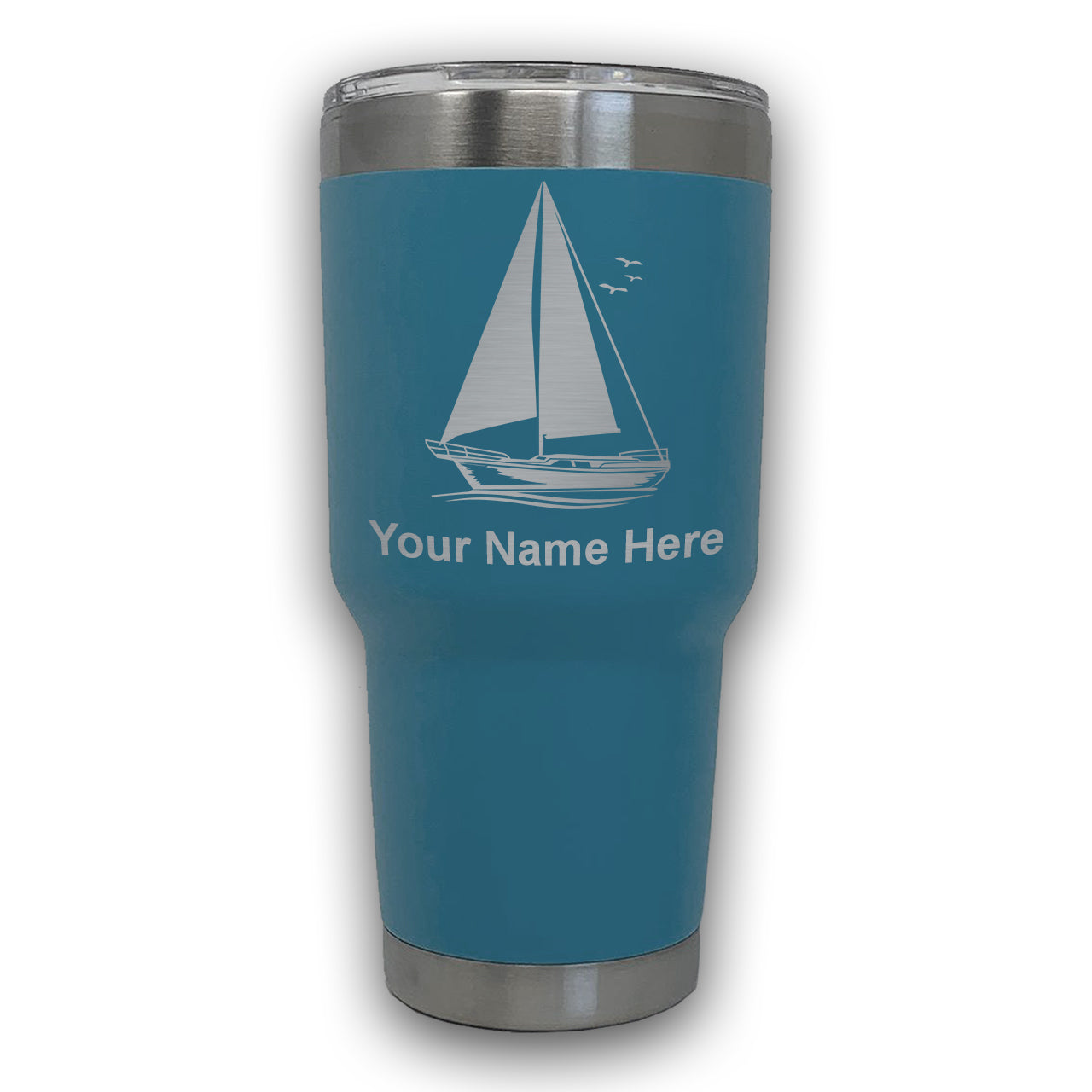 LaserGram 30oz Tumbler Mug, Sailboat, Personalized Engraving Included