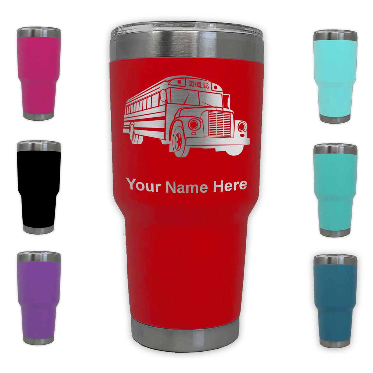 LaserGram 30oz Tumbler Mug, School Bus, Personalized Engraving Included