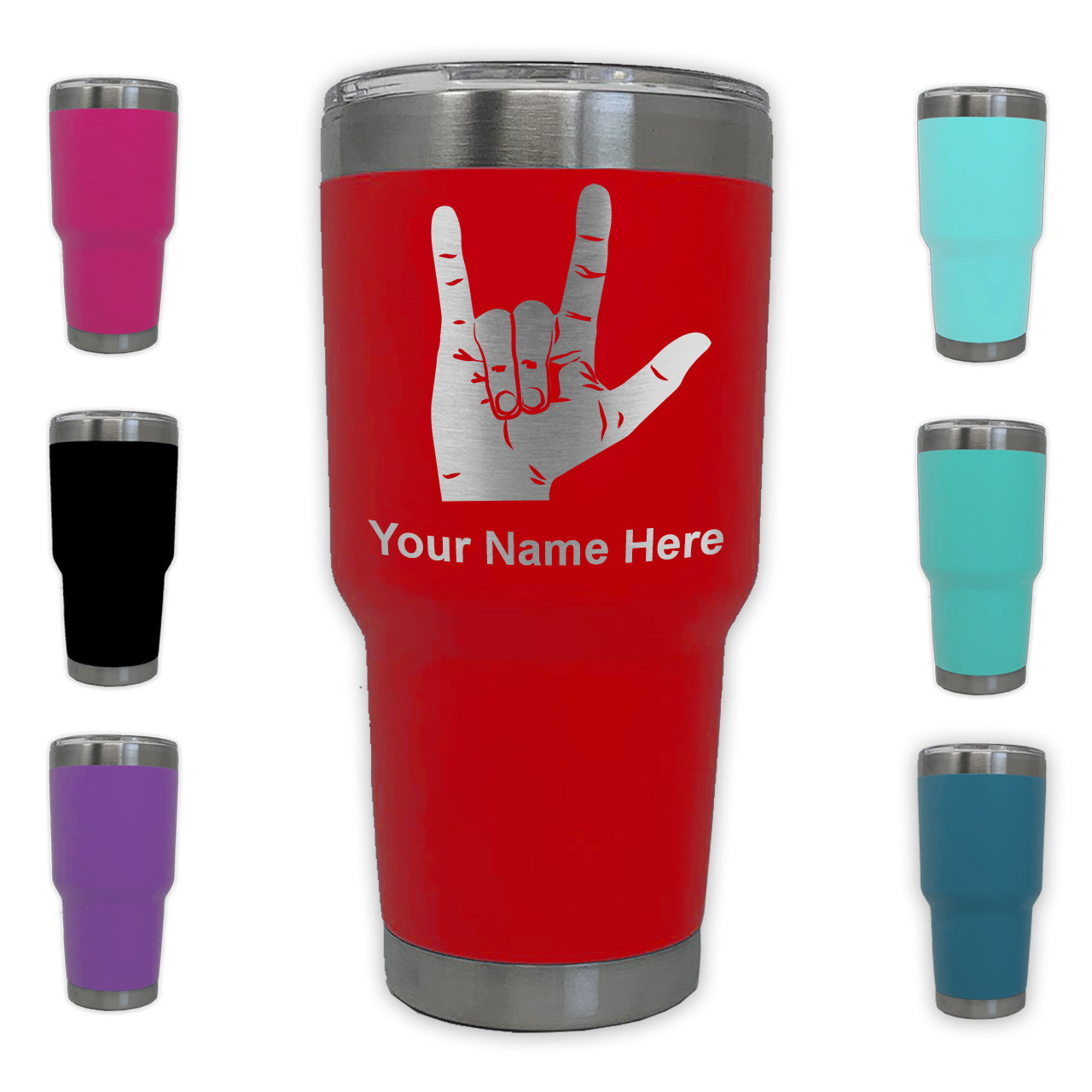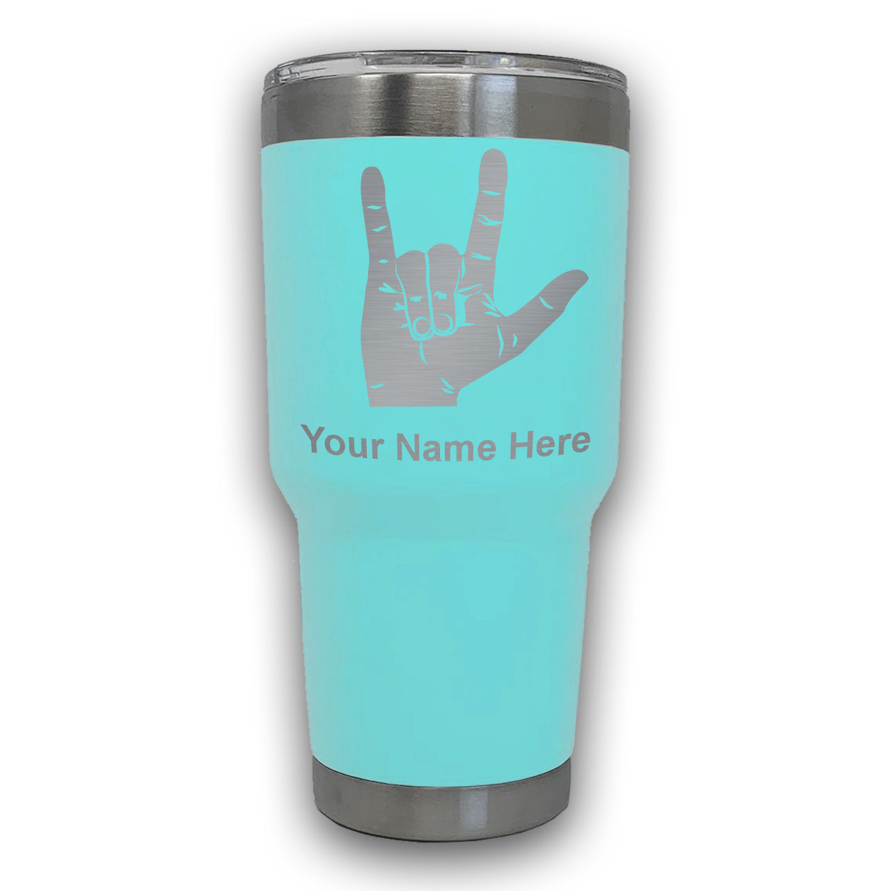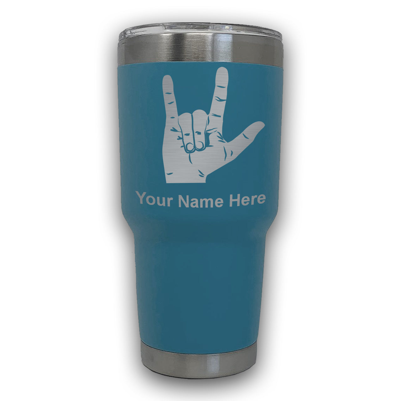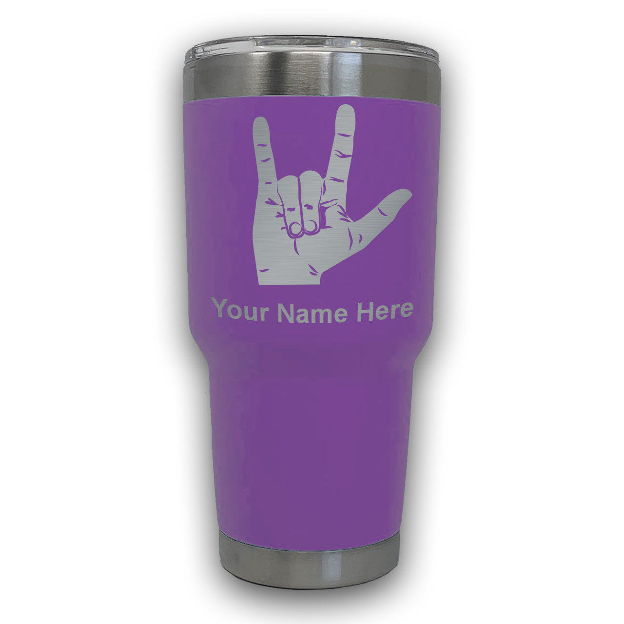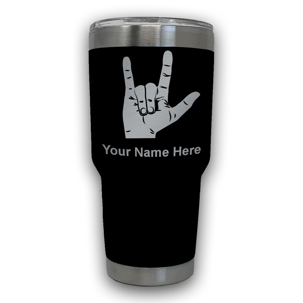 LaserGram 30oz Tumbler Mug, Sign Language I Love You, Personalized Engraving Included