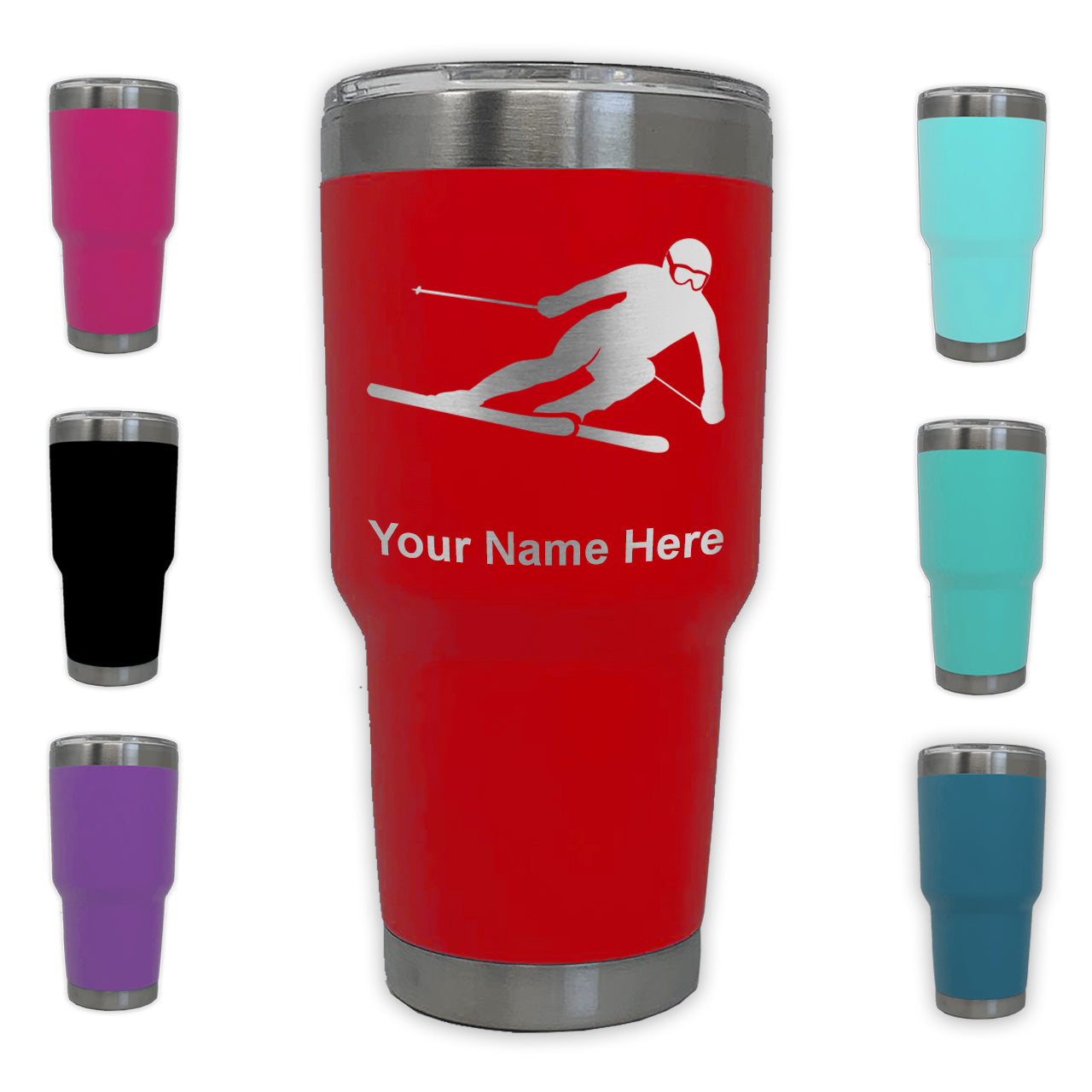 LaserGram 30oz Tumbler Mug, Skier Downhill, Personalized Engraving Included