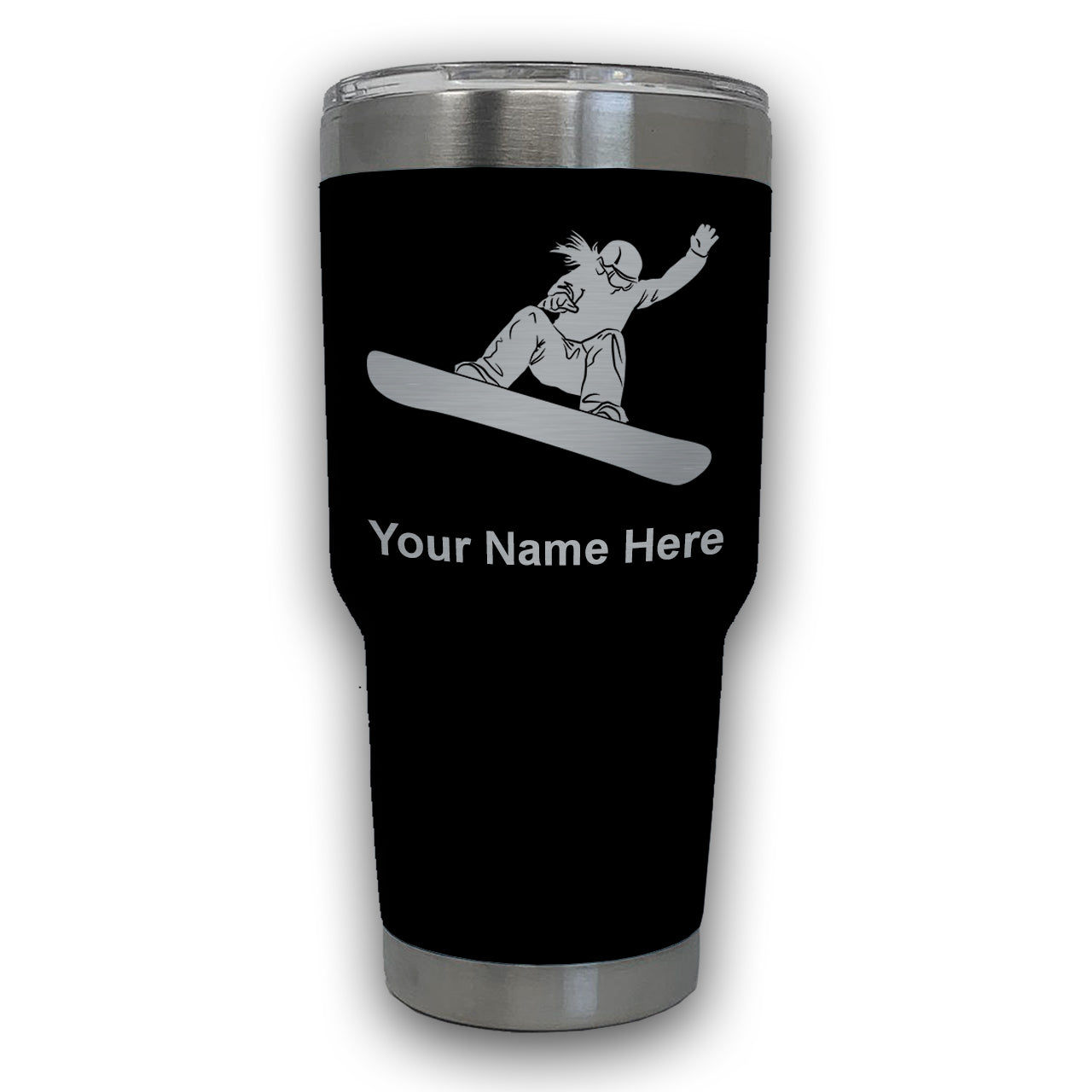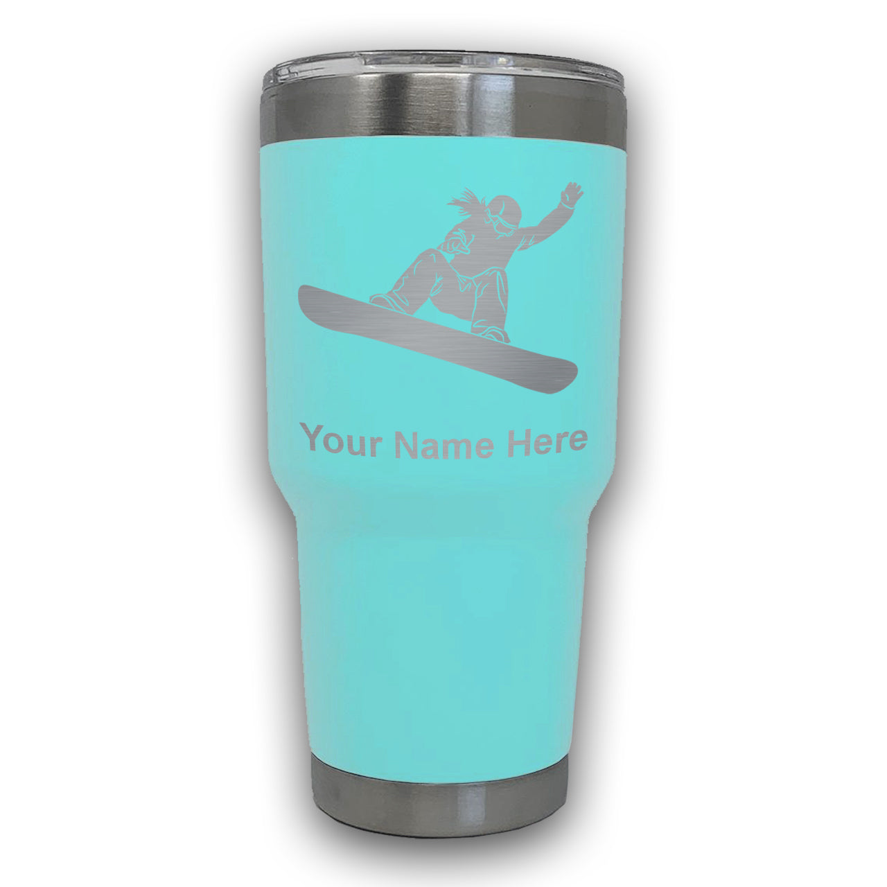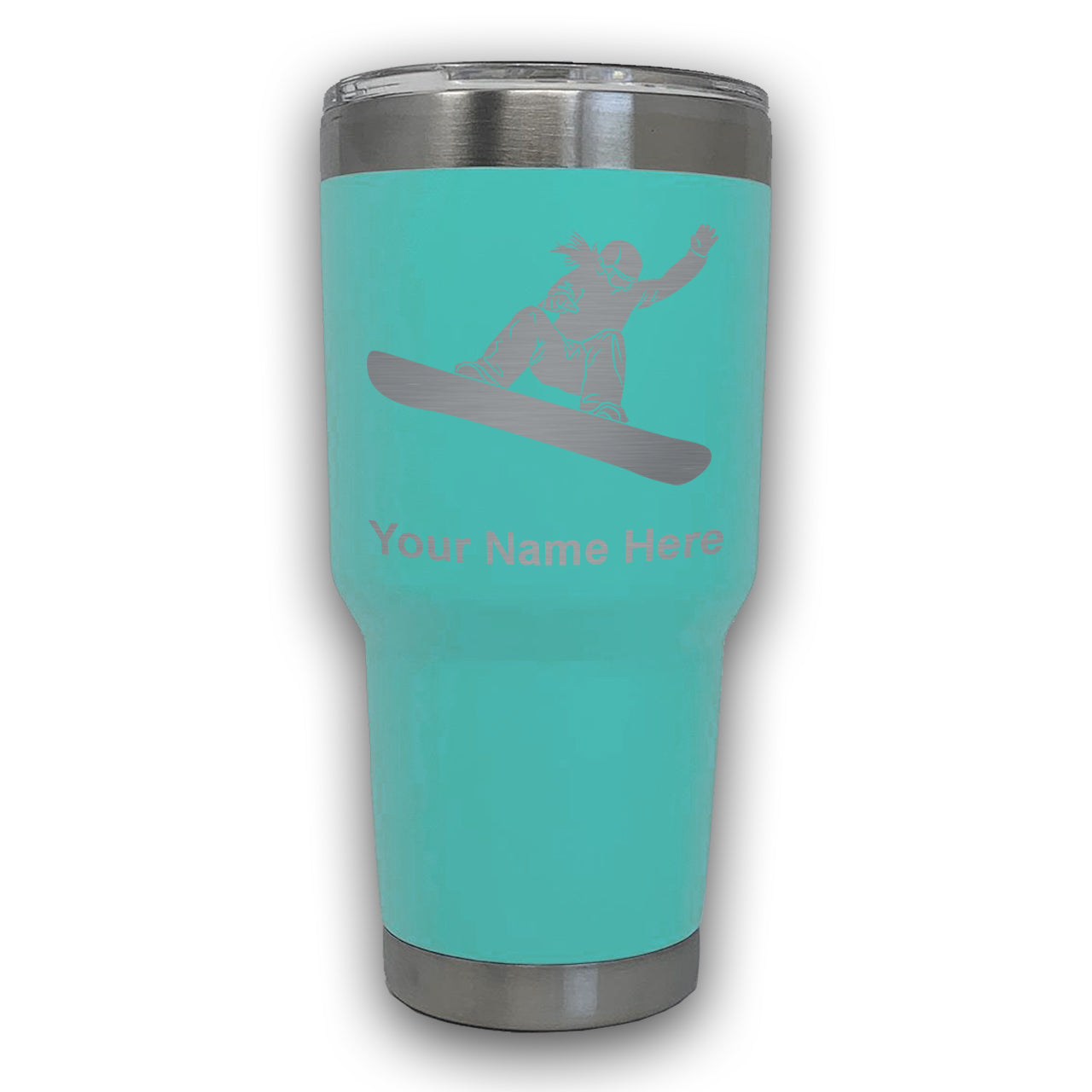LaserGram 30oz Tumbler Mug, Snowboarder Woman, Personalized Engraving Included