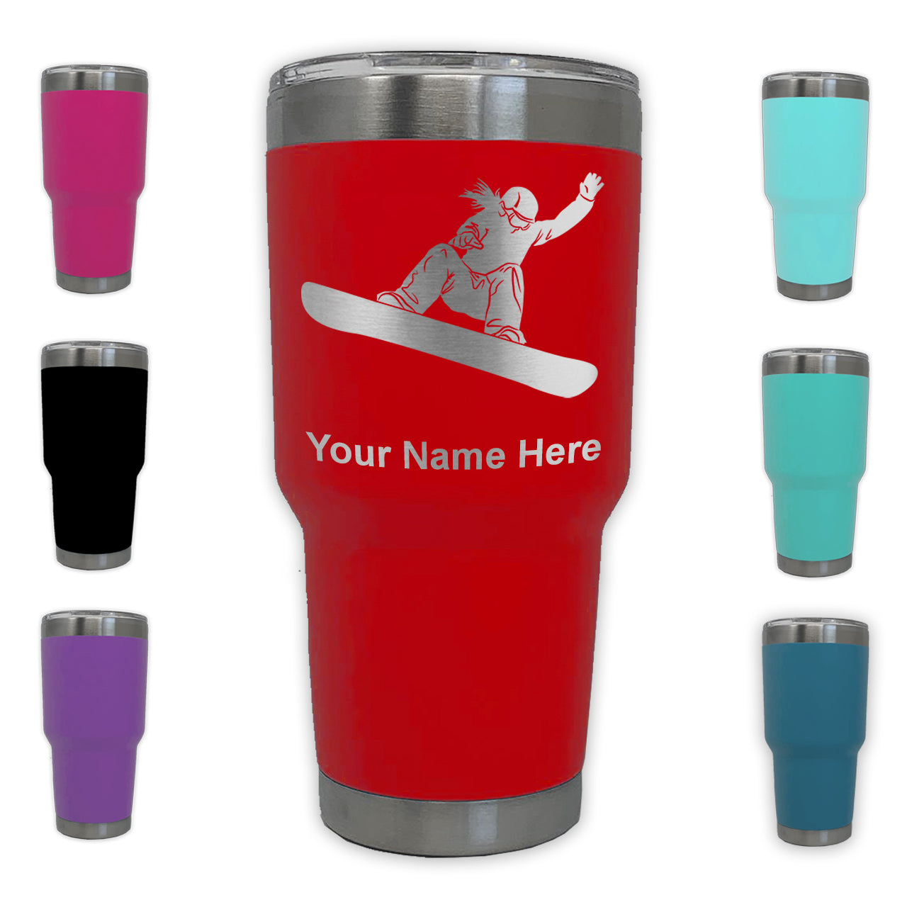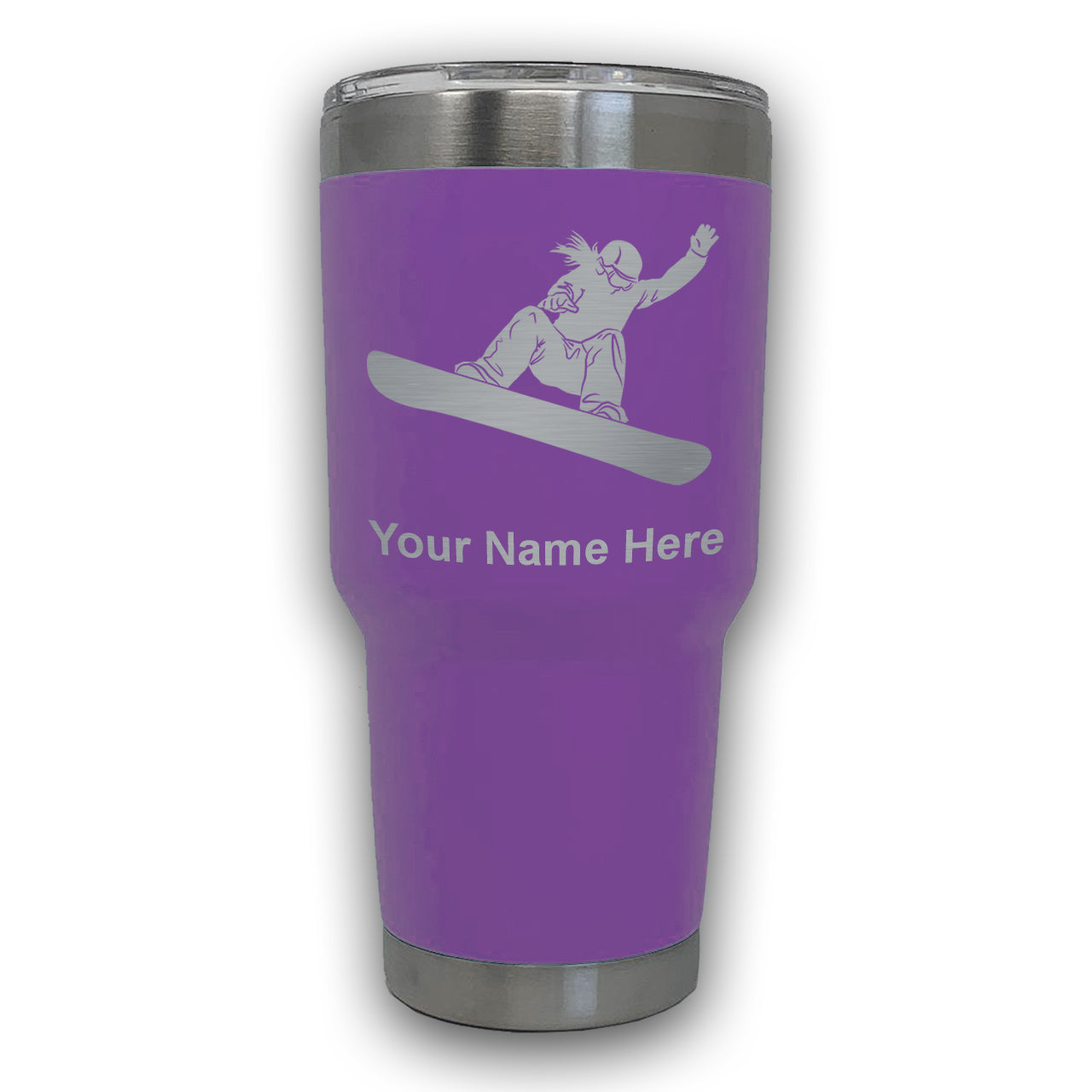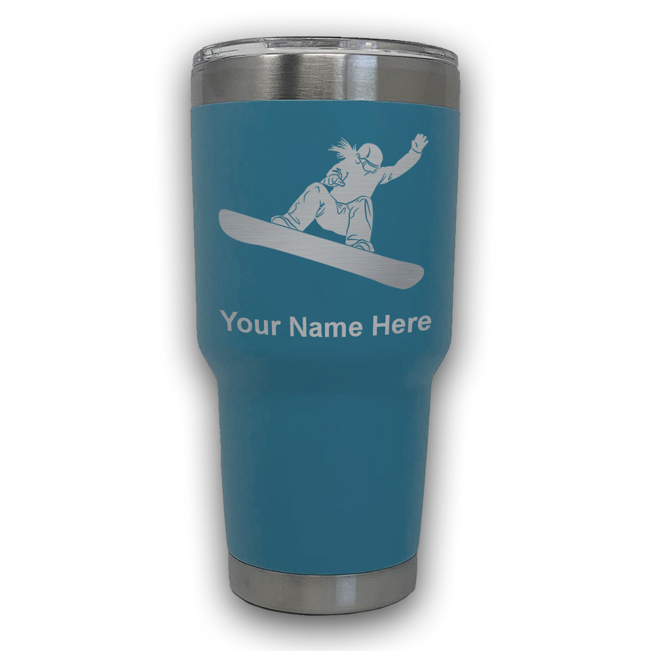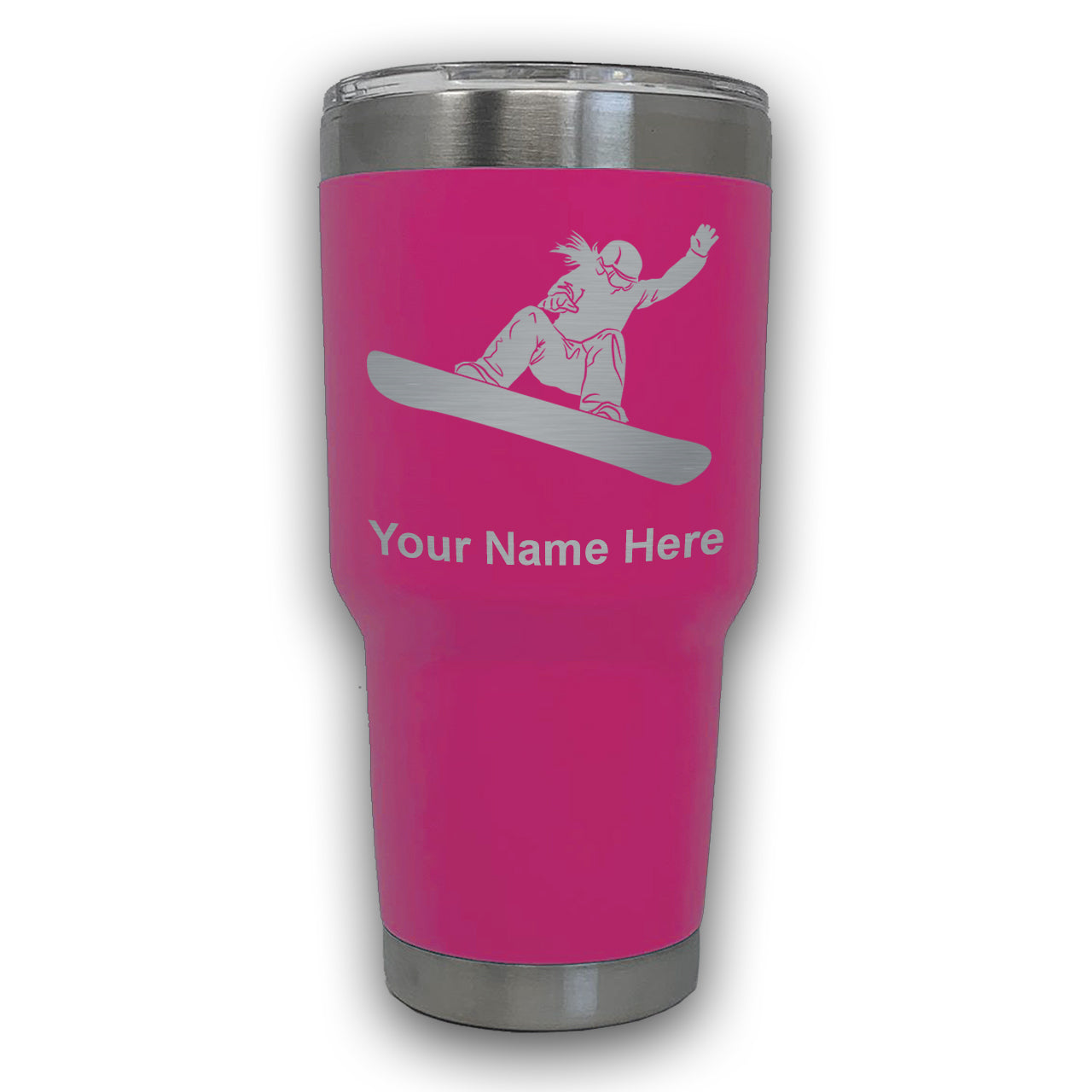 LaserGram 30oz Tumbler Mug, Snowboarder Woman, Personalized Engraving Included