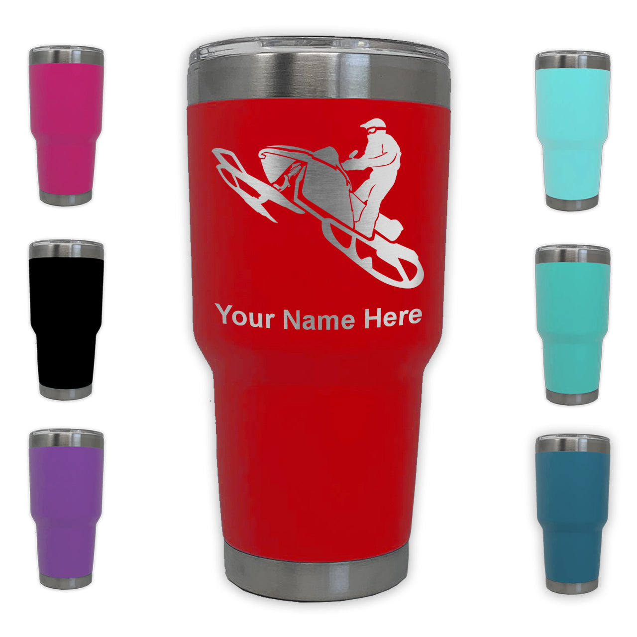 LaserGram 30oz Tumbler Mug, Snowmobile, Personalized Engraving Included