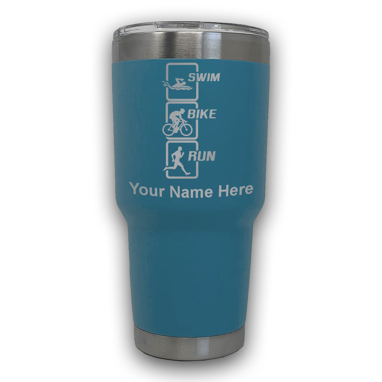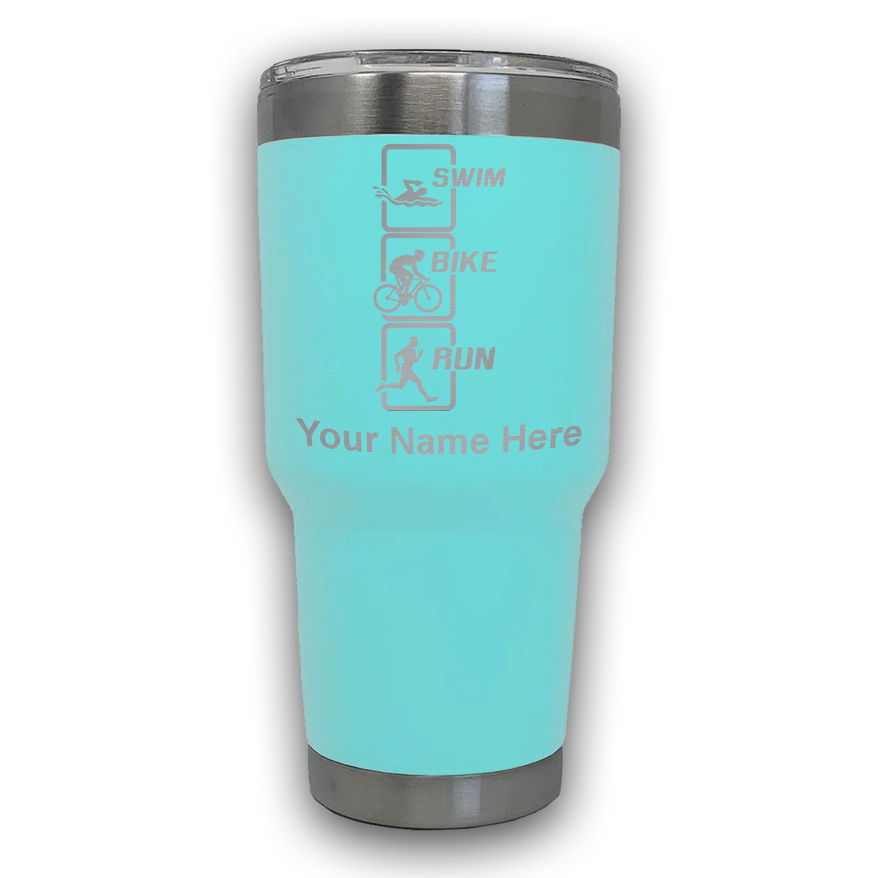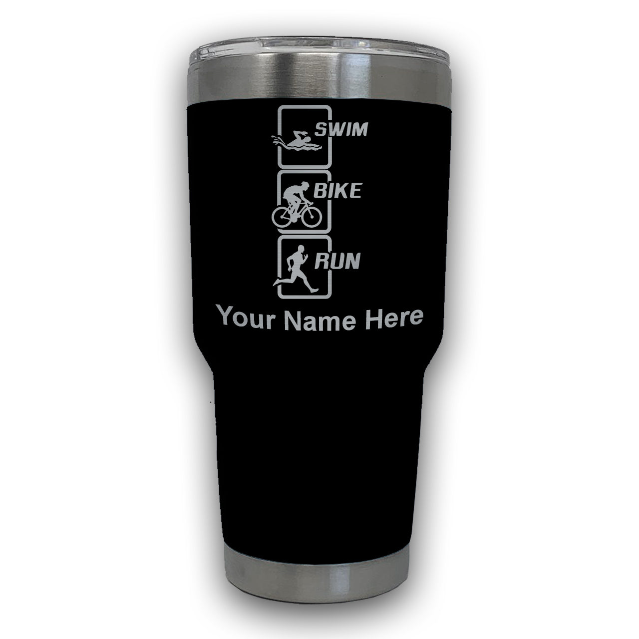 LaserGram 30oz Tumbler Mug, Swim Bike Run Vertical, Personalized Engraving Included