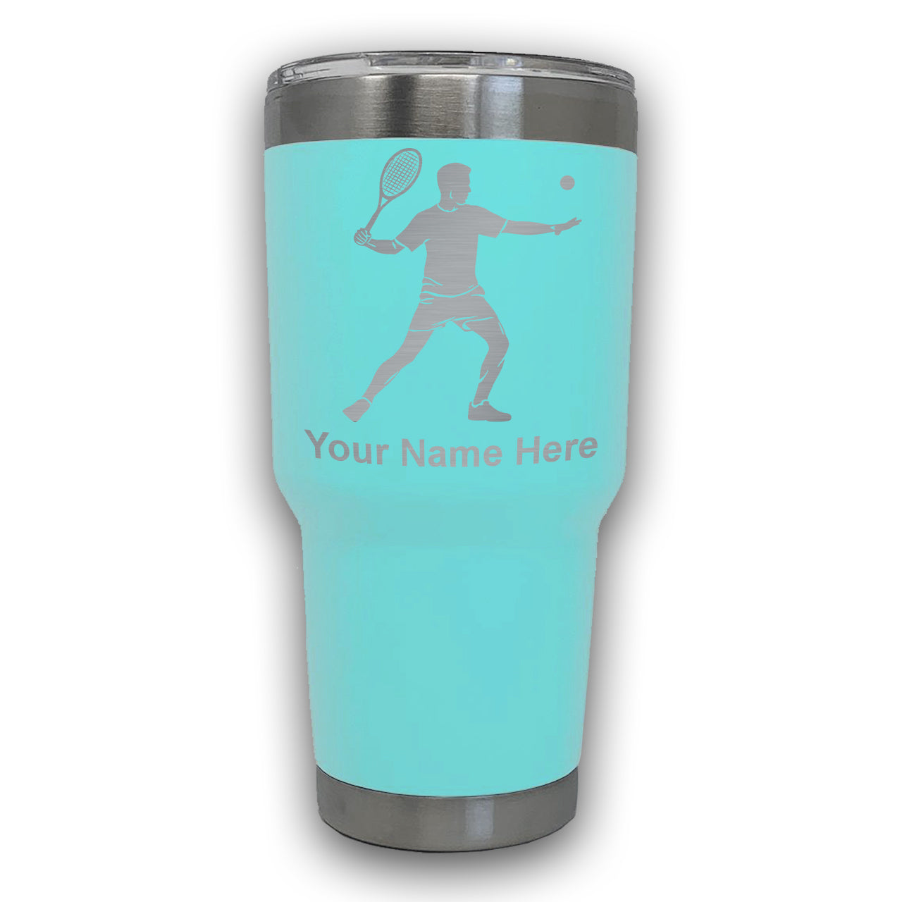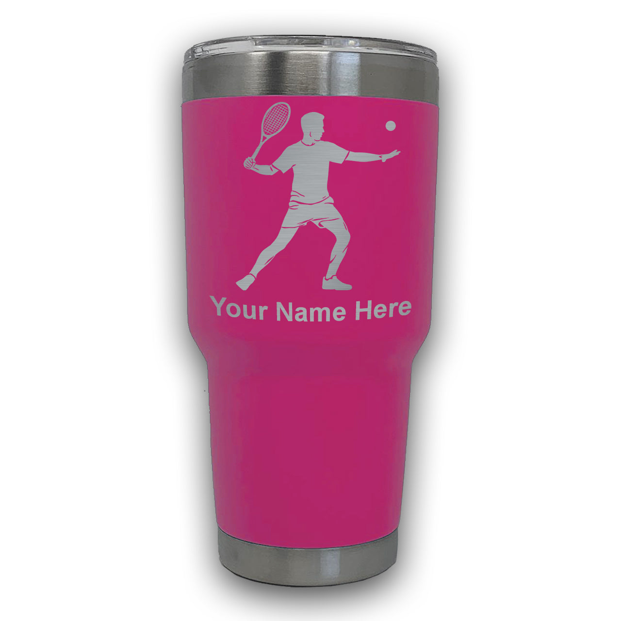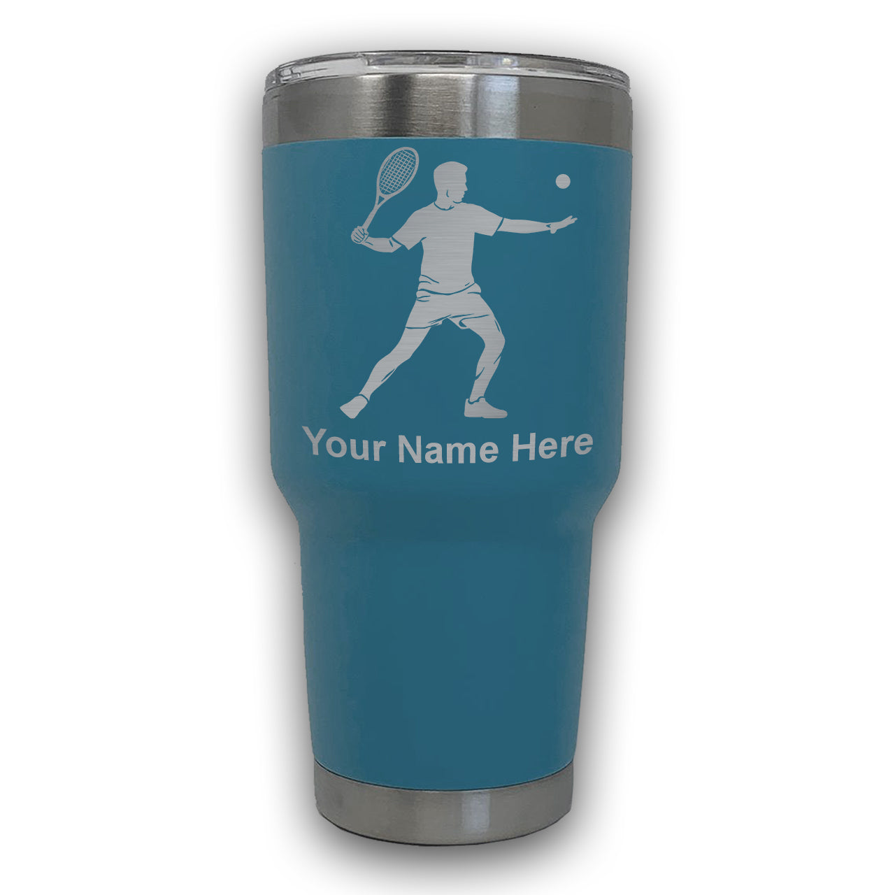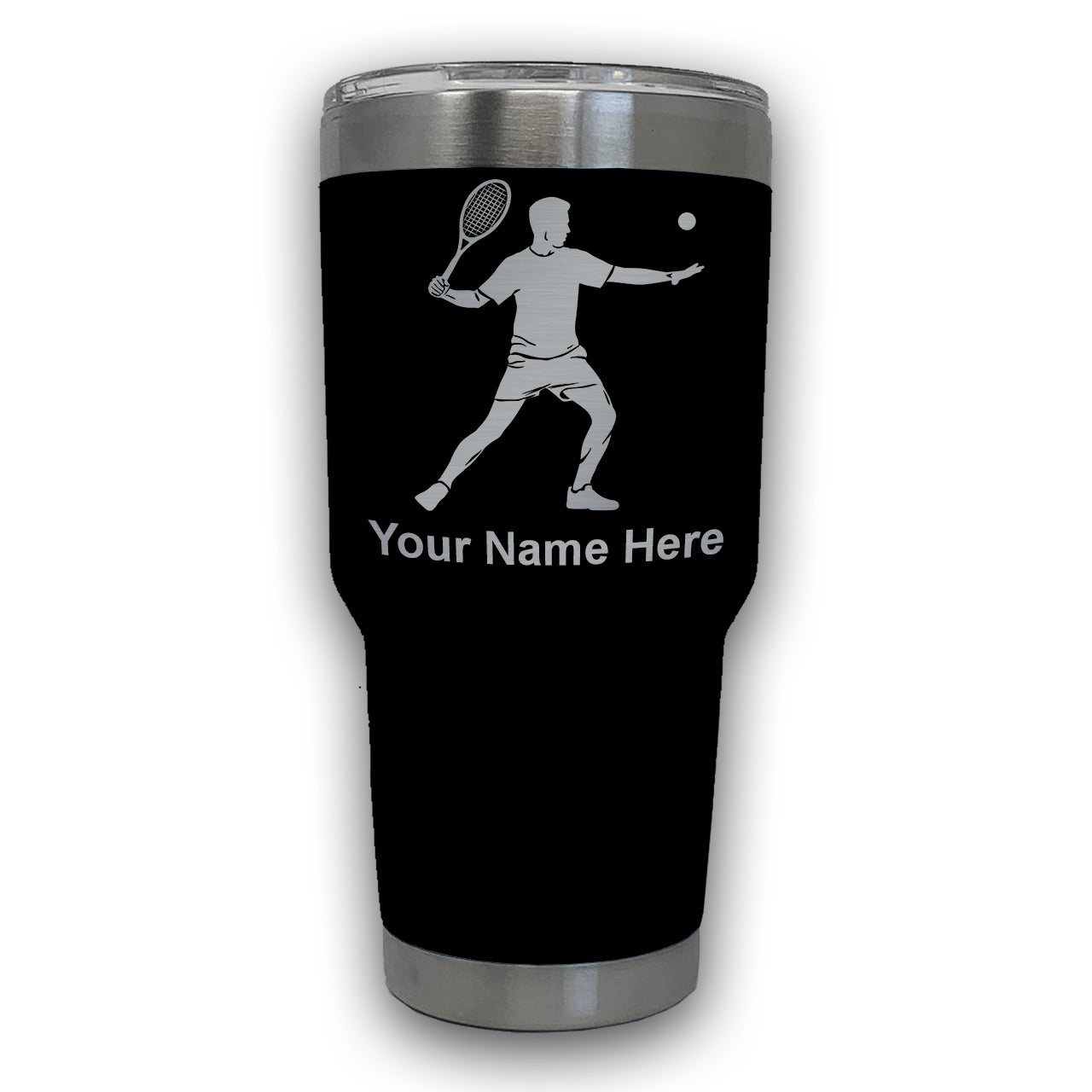 LaserGram 30oz Tumbler Mug, Tennis Player Man, Personalized Engraving Included