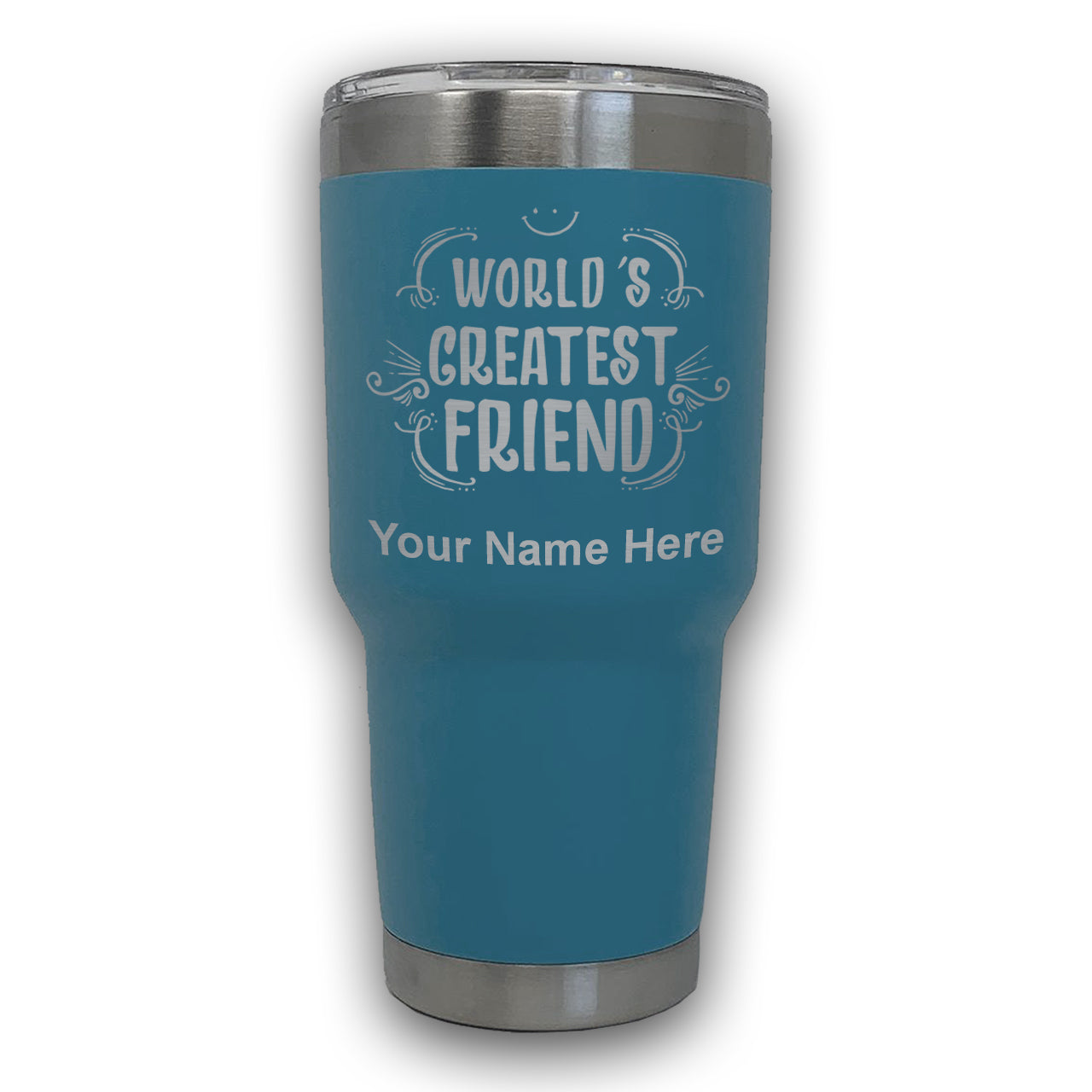 LaserGram 30oz Tumbler Mug, World's Greatest Friend, Personalized Engraving Included
