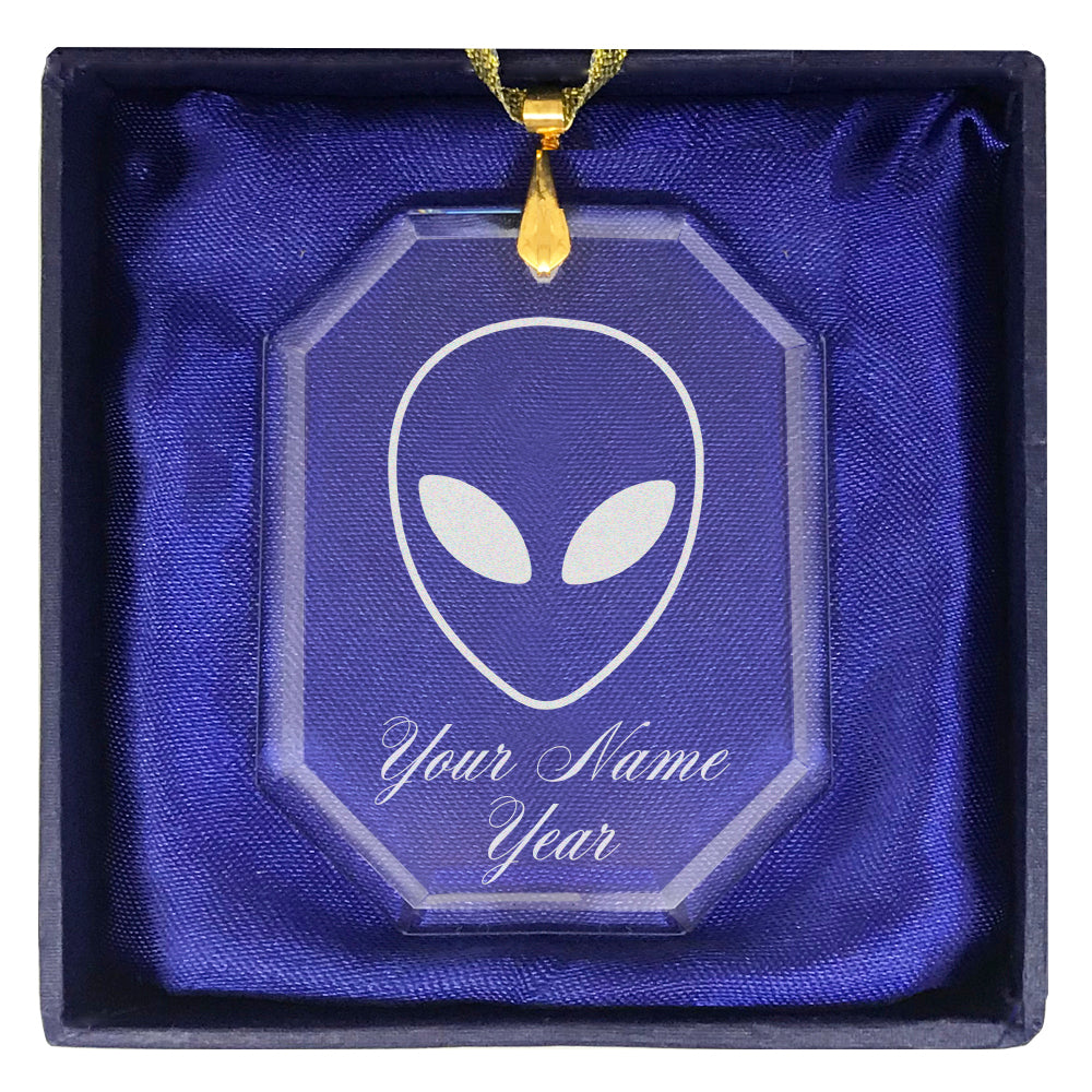 LaserGram Christmas Ornament, Alien Head, Personalized Engraving Included (Rectangle Shape)
