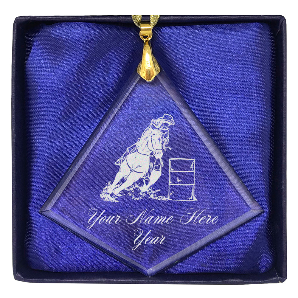 LaserGram Christmas Ornament, Barrel Racer, Personalized Engraving Included (Diamond Shape)