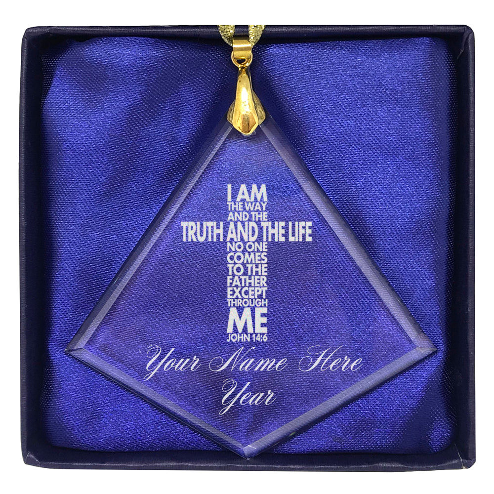 LaserGram Christmas Ornament, Bible Verse John 14-6, Personalized Engraving Included (Diamond Shape)