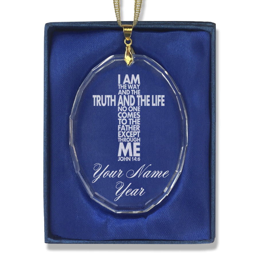 LaserGram Christmas Ornament, Bible Verse John 14-6, Personalized Engraving Included (Oval Shape)