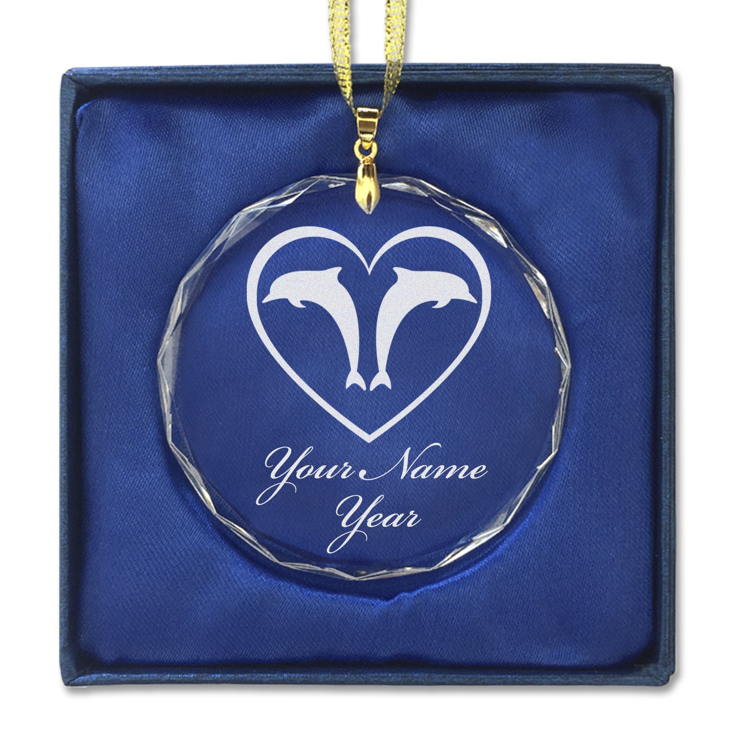 LaserGram Christmas Ornament, Dolphin Heart, Personalized Engraving Included (Round Shape)