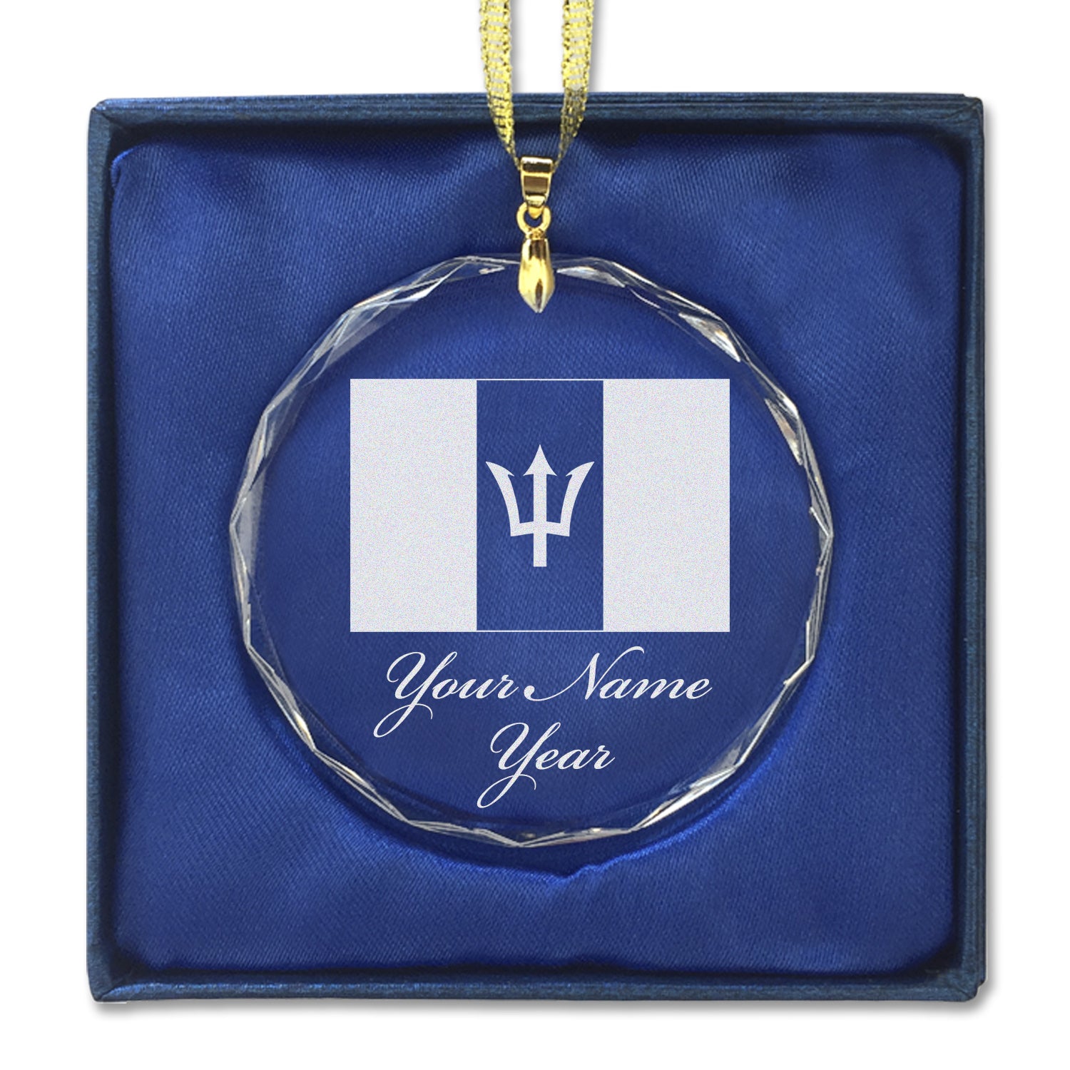 LaserGram Christmas Ornament, Flag of Barbados, Personalized Engraving Included (Round Shape)