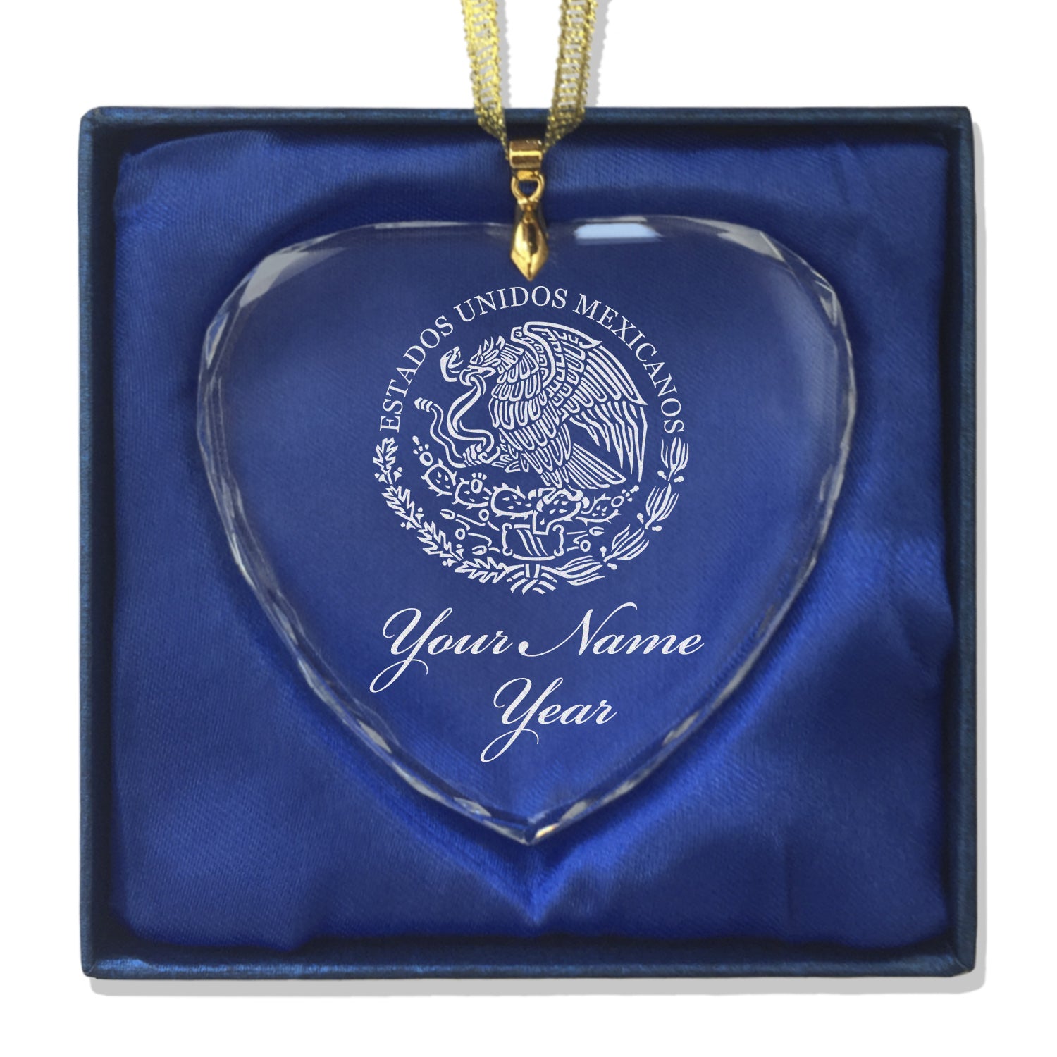 LaserGram Christmas Ornament, Flag of Mexico, Personalized Engraving Included (Heart Shape)