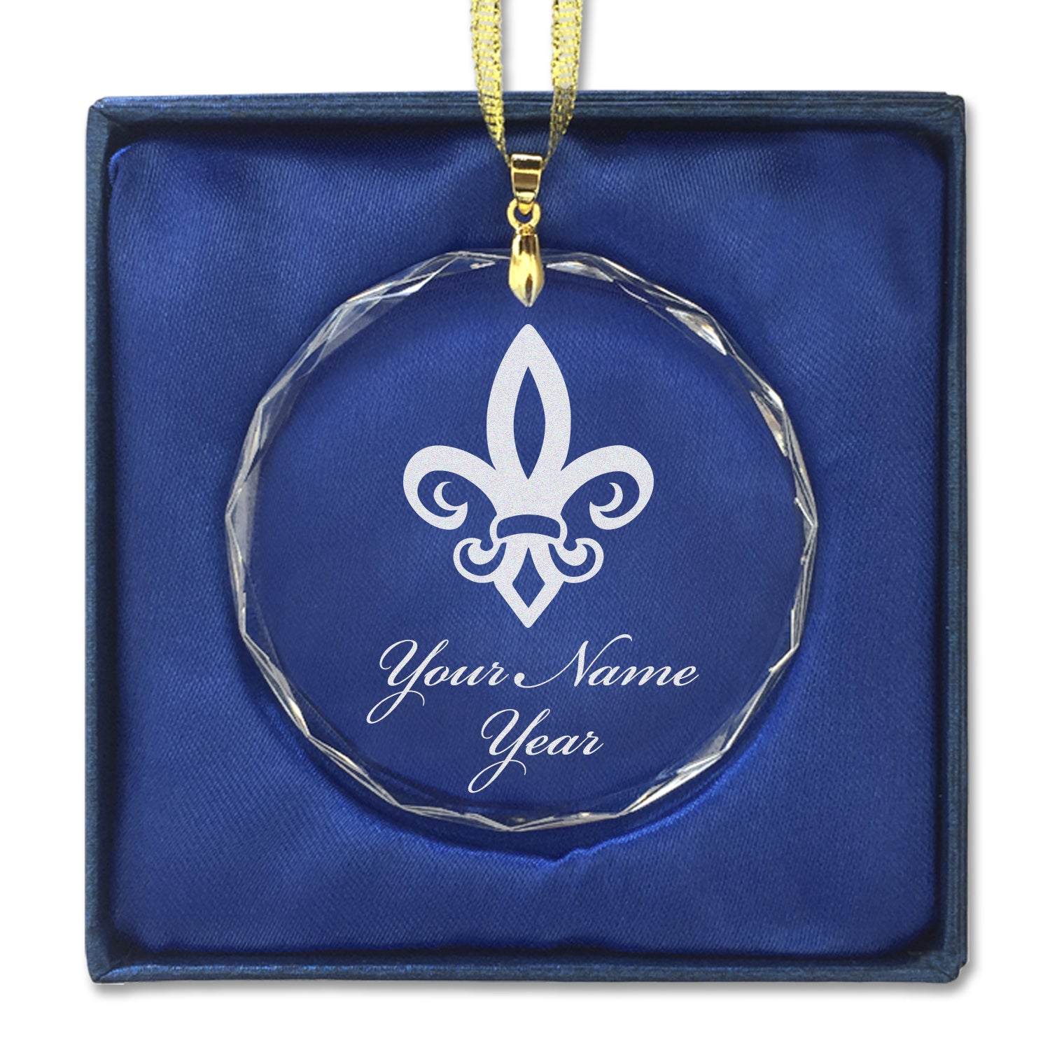 LaserGram Christmas Ornament, Fleur de Lis, Personalized Engraving Included (Round Shape)
