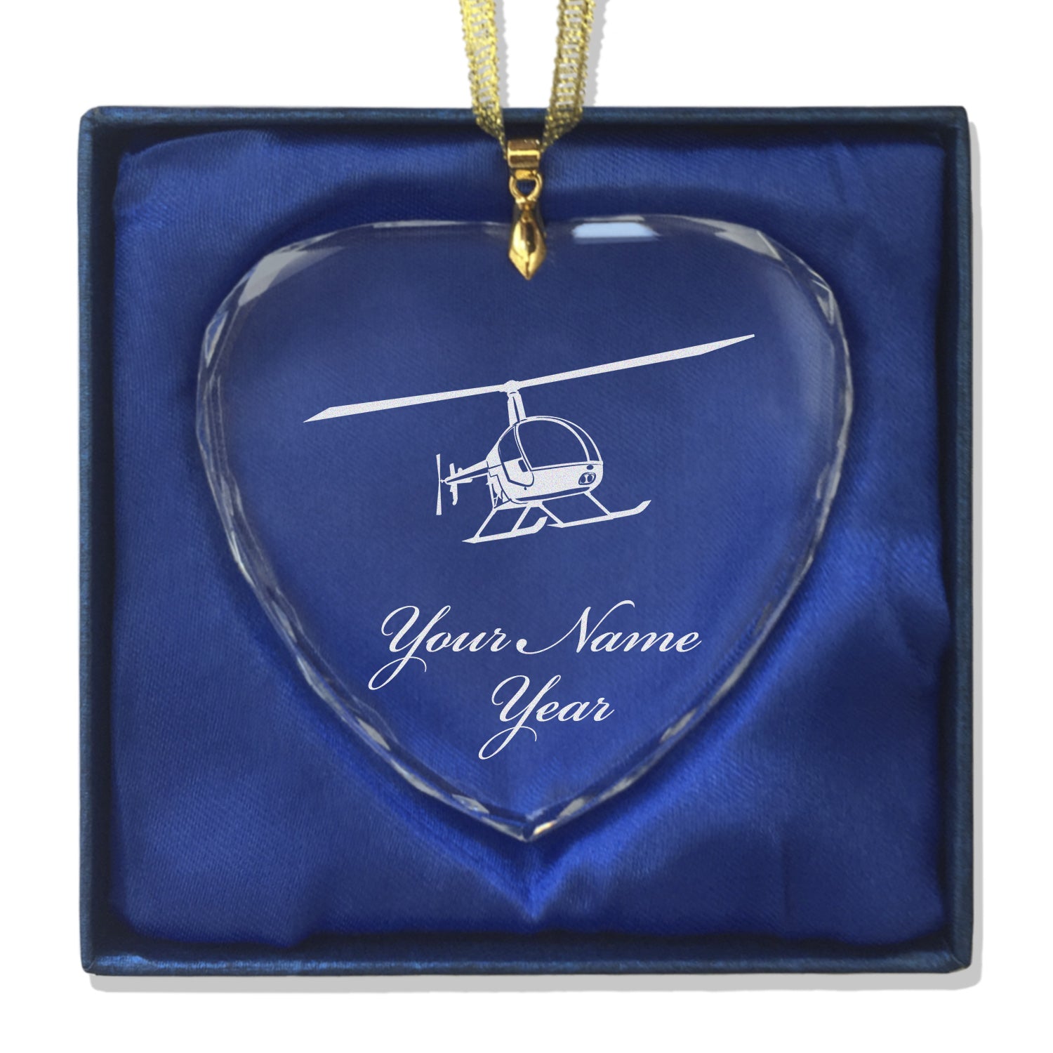 LaserGram Christmas Ornament, Helicopter 2, Personalized Engraving Included (Heart Shape)