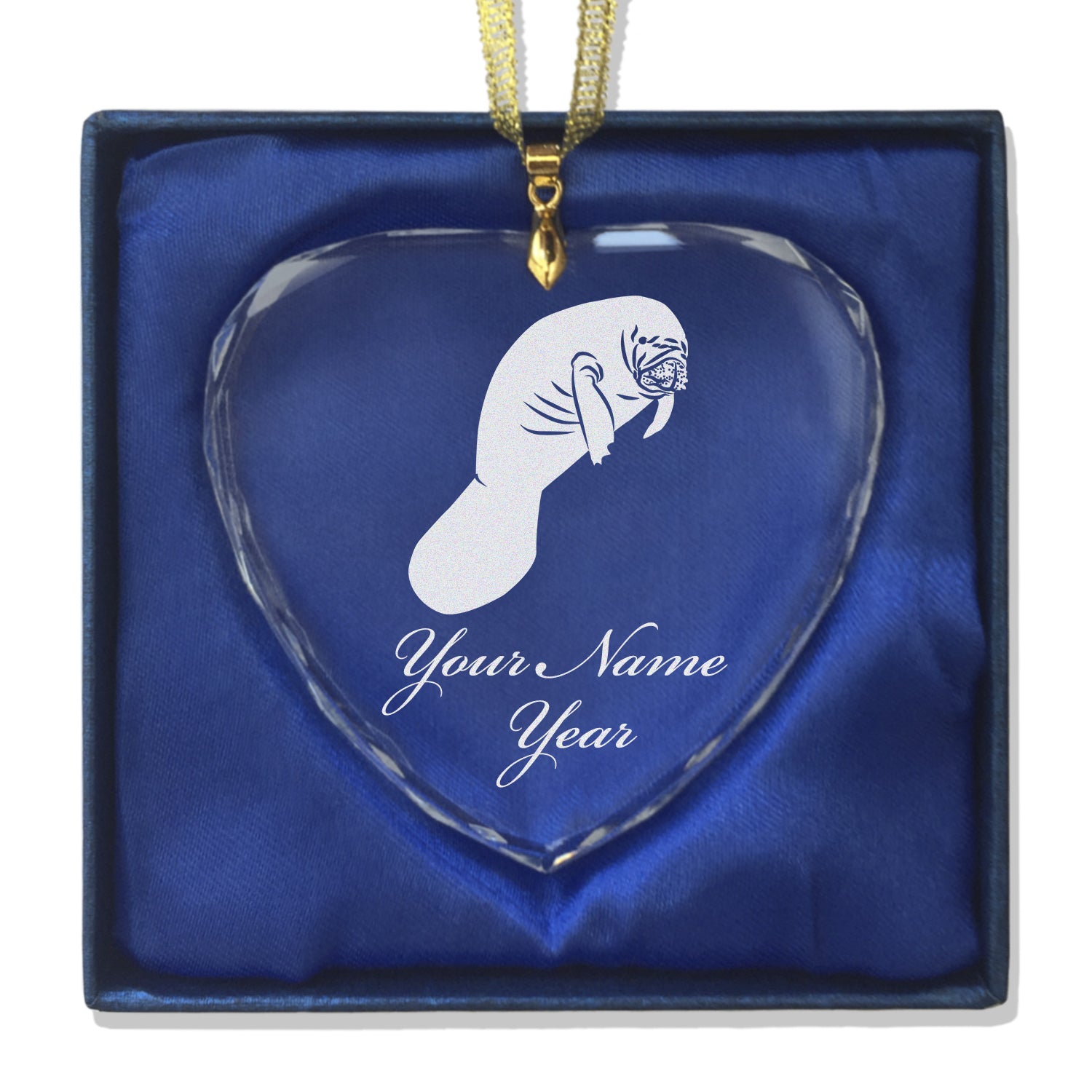 LaserGram Christmas Ornament, Manatee, Personalized Engraving Included (Heart Shape)