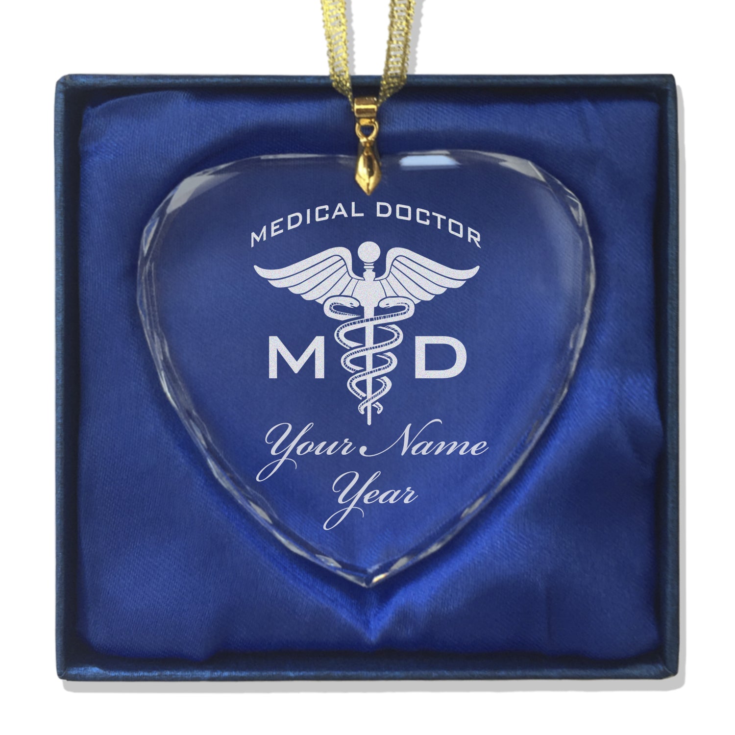 LaserGram Christmas Ornament, MD Medical Doctor, Personalized Engraving Included (Heart Shape)
