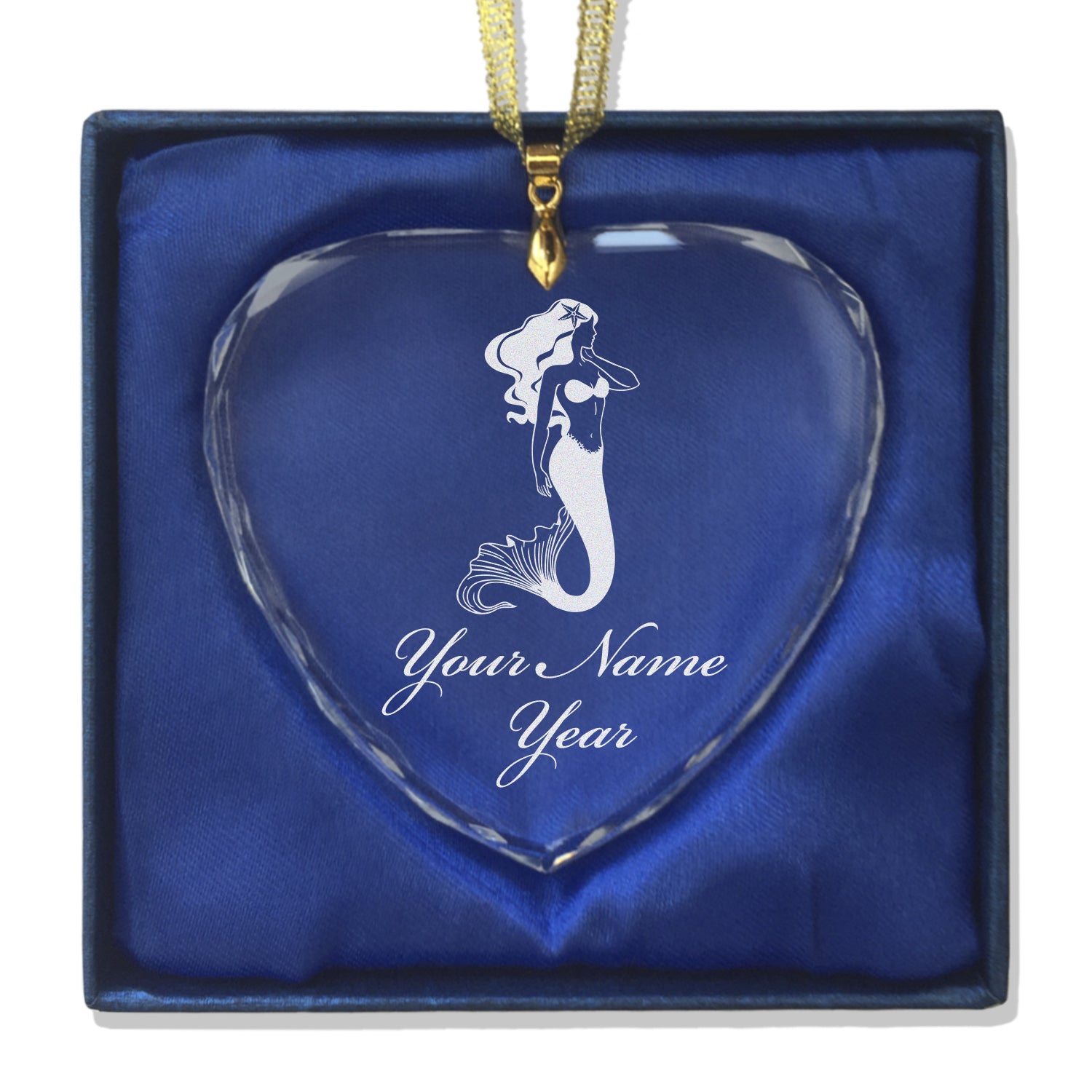 LaserGram Christmas Ornament, Mermaid, Personalized Engraving Included (Heart Shape)