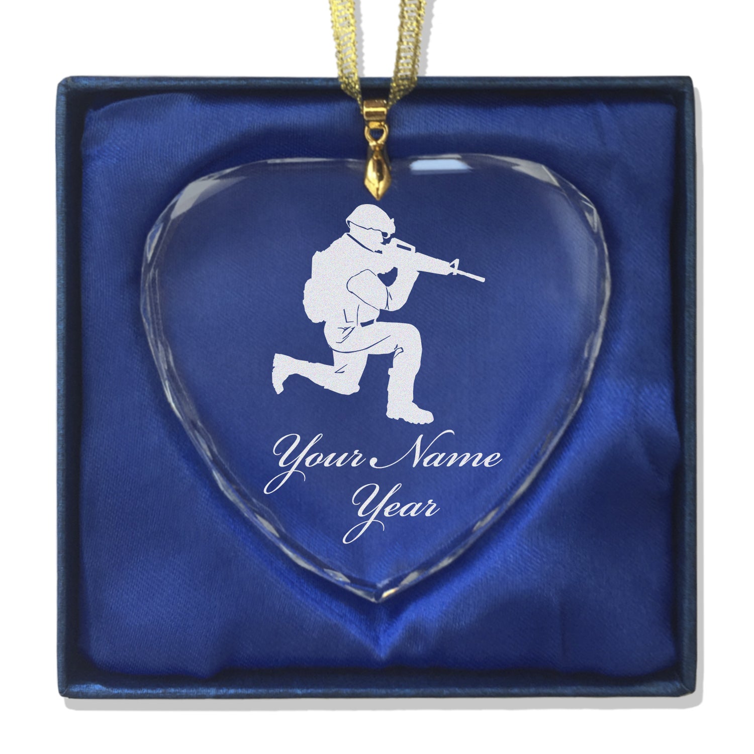 LaserGram Christmas Ornament, Military Soldier, Personalized Engraving Included (Heart Shape)