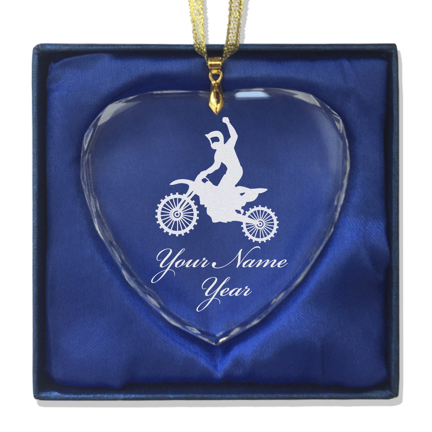 LaserGram Christmas Ornament, Motocross, Personalized Engraving Included (Heart Shape)