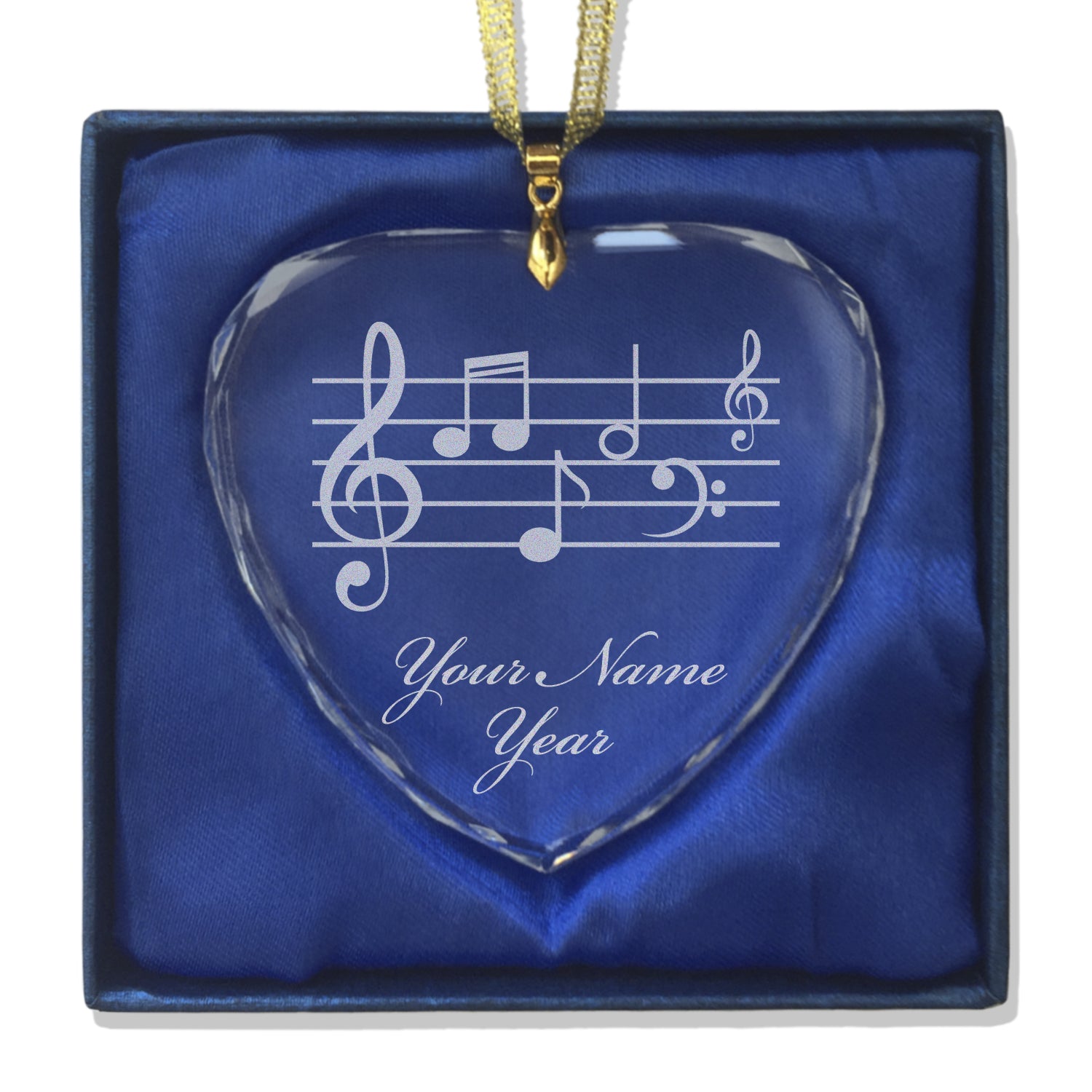 LaserGram Christmas Ornament, Music Staff, Personalized Engraving Included (Heart Shape)