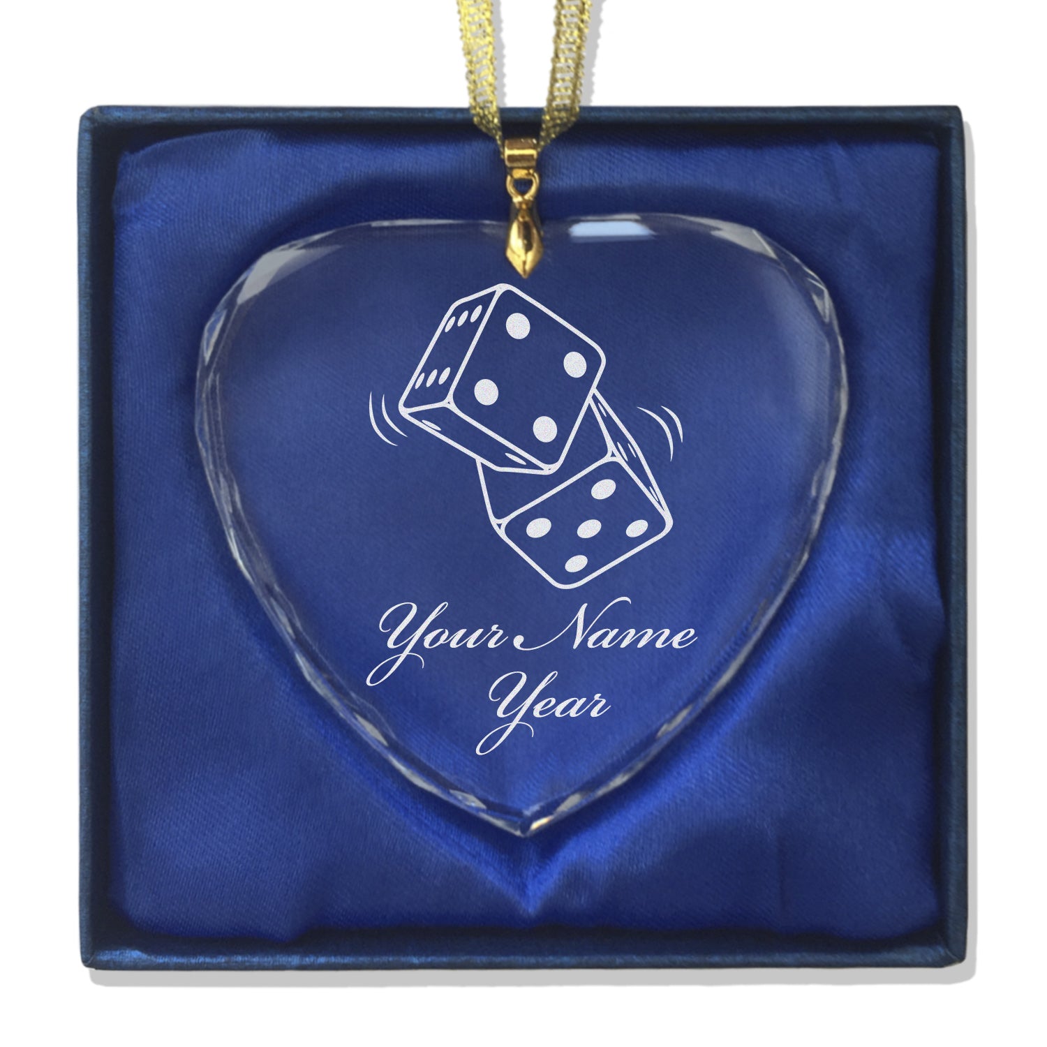 LaserGram Christmas Ornament, Pair of Dice, Personalized Engraving Included (Heart Shape)