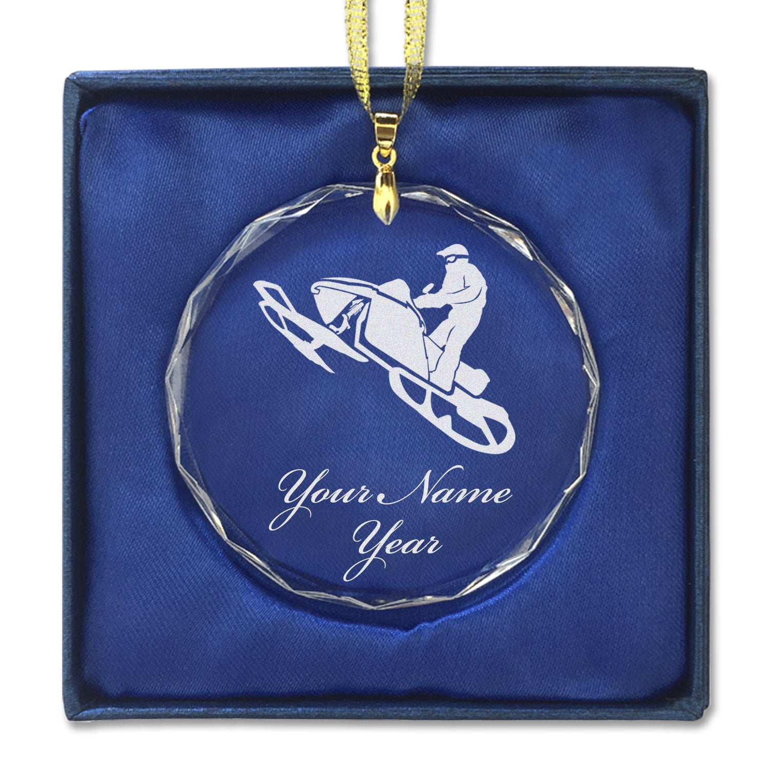 LaserGram Christmas Ornament, Snowmobile, Personalized Engraving Included (Round Shape)