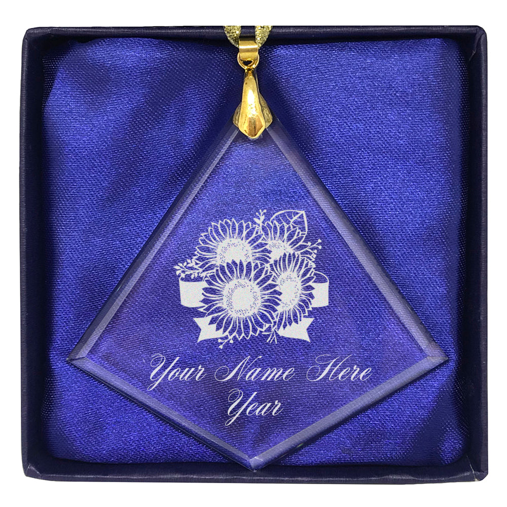 LaserGram Christmas Ornament, Sunflowers, Personalized Engraving Included (Diamond Shape)