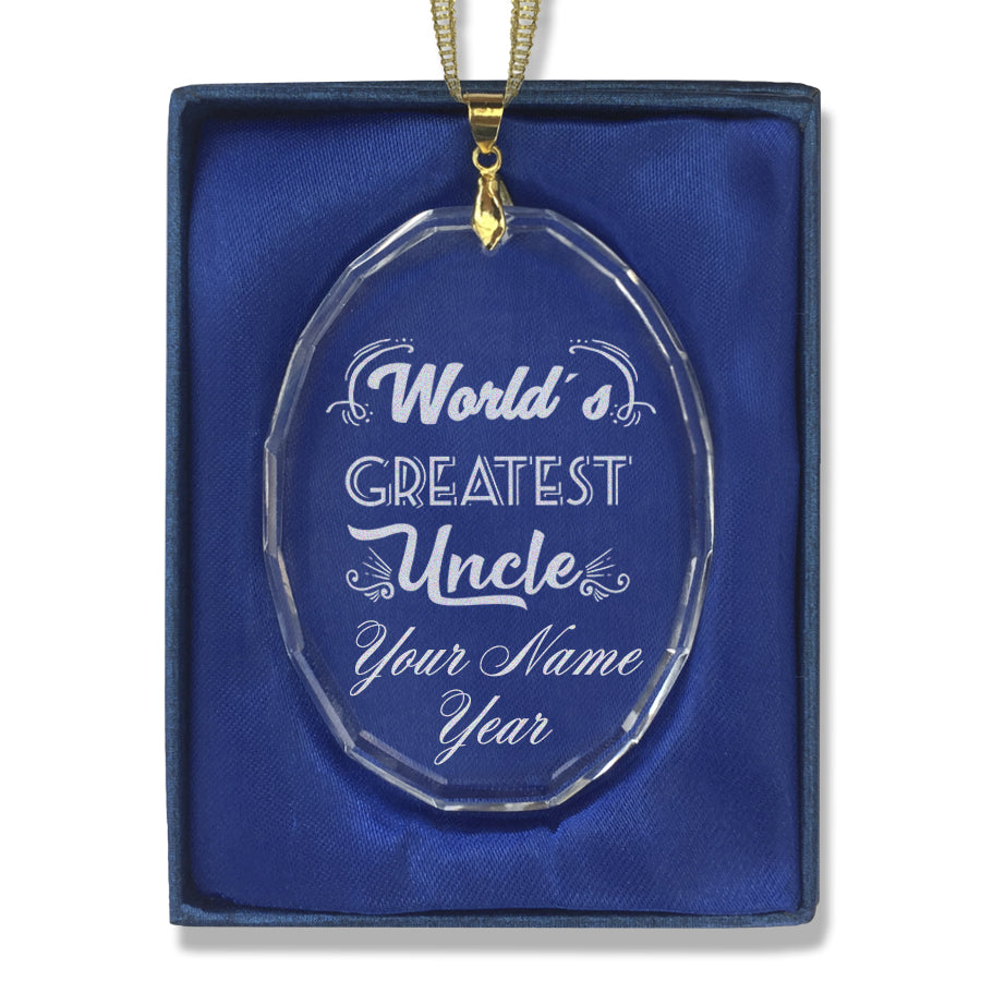 LaserGram Christmas Ornament, World's Greatest Uncle, Personalized Engraving Included (Oval Shape)