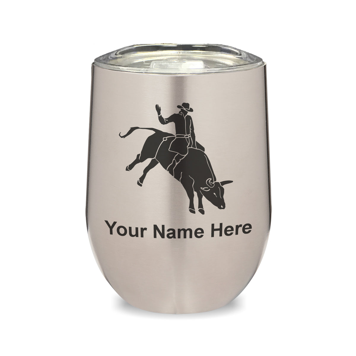 LaserGram Double Wall Stainless Steel Wine Glass, Bull Rider Cowboy, Personalized Engraving Included