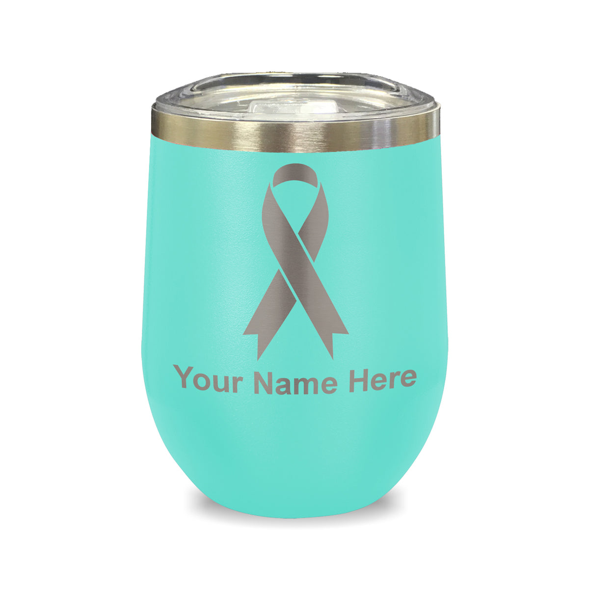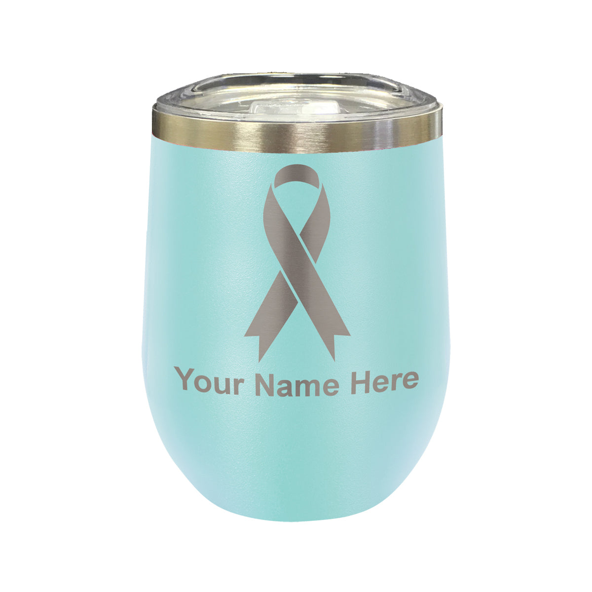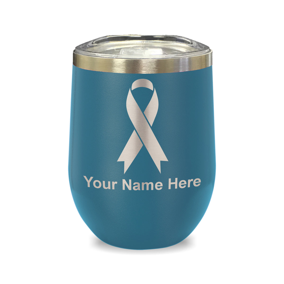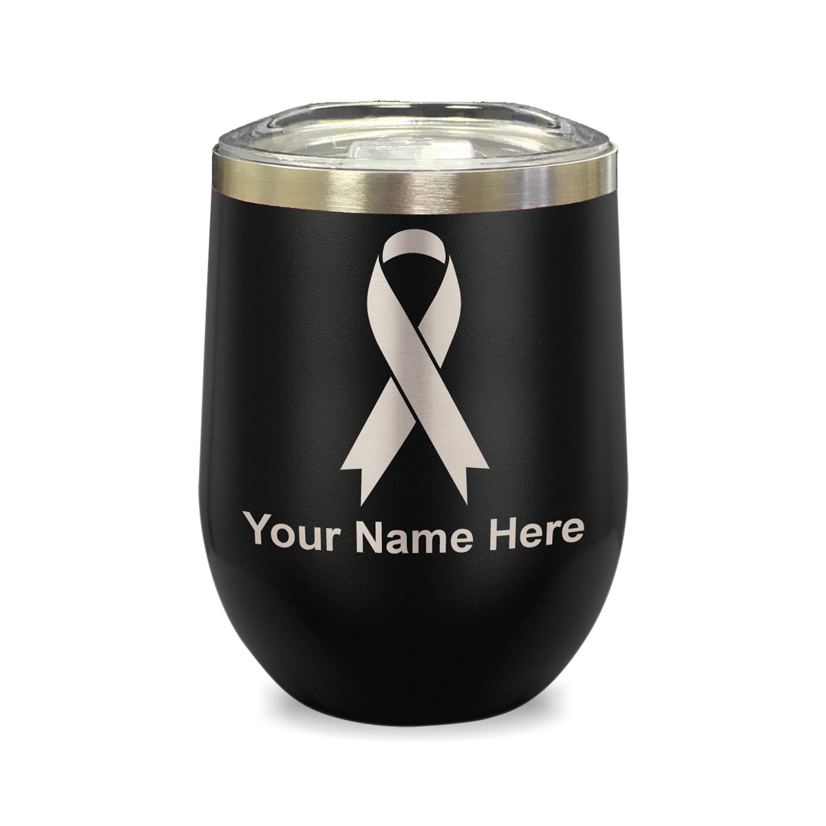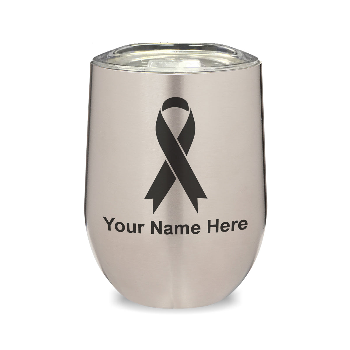LaserGram Double Wall Stainless Steel Wine Glass, Cancer Awareness Ribbon, Personalized Engraving Included