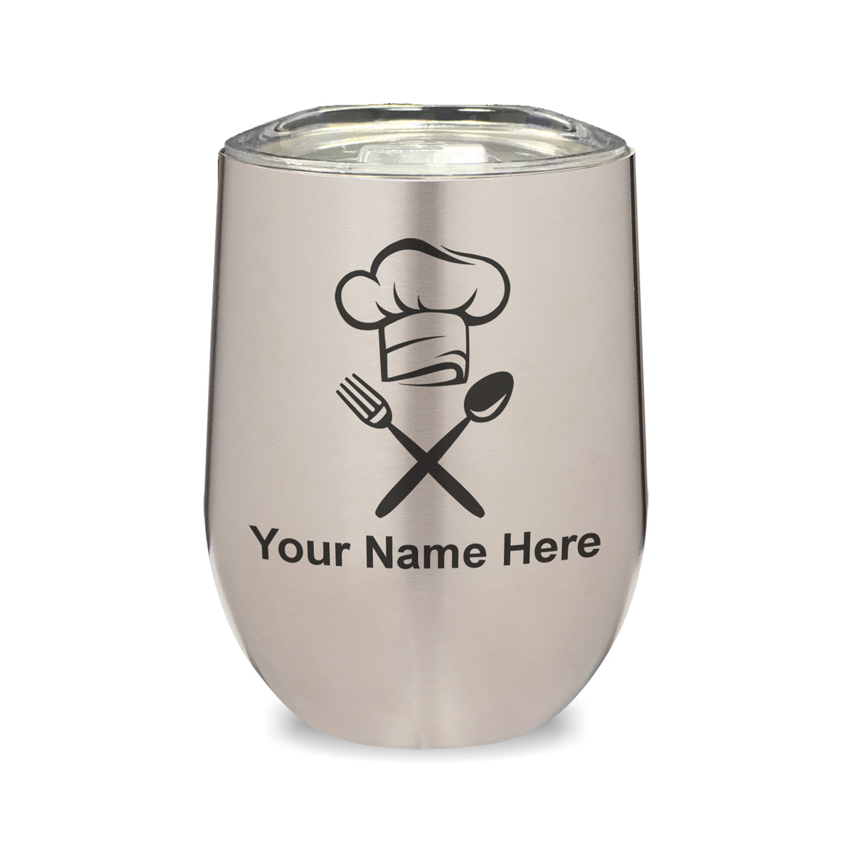 LaserGram Double Wall Stainless Steel Wine Glass, Chef Hat, Personalized Engraving Included