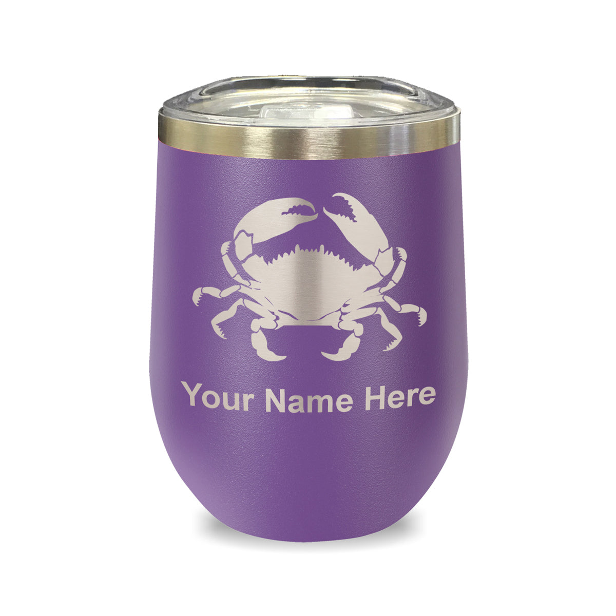 LaserGram Double Wall Stainless Steel Wine Glass, Crab, Personalized Engraving Included