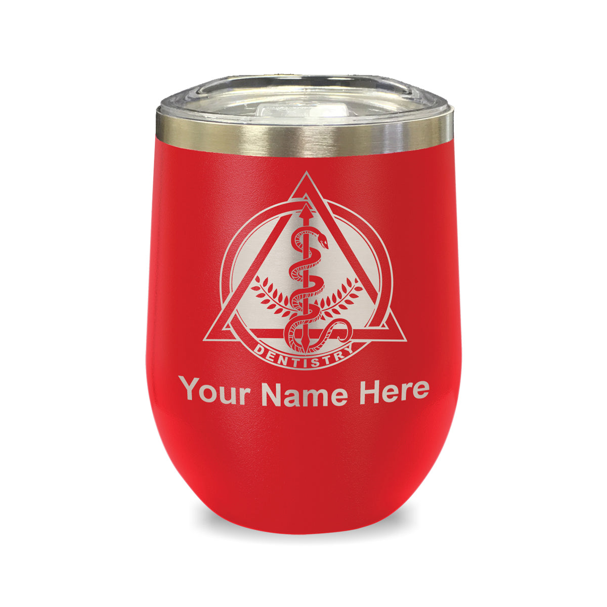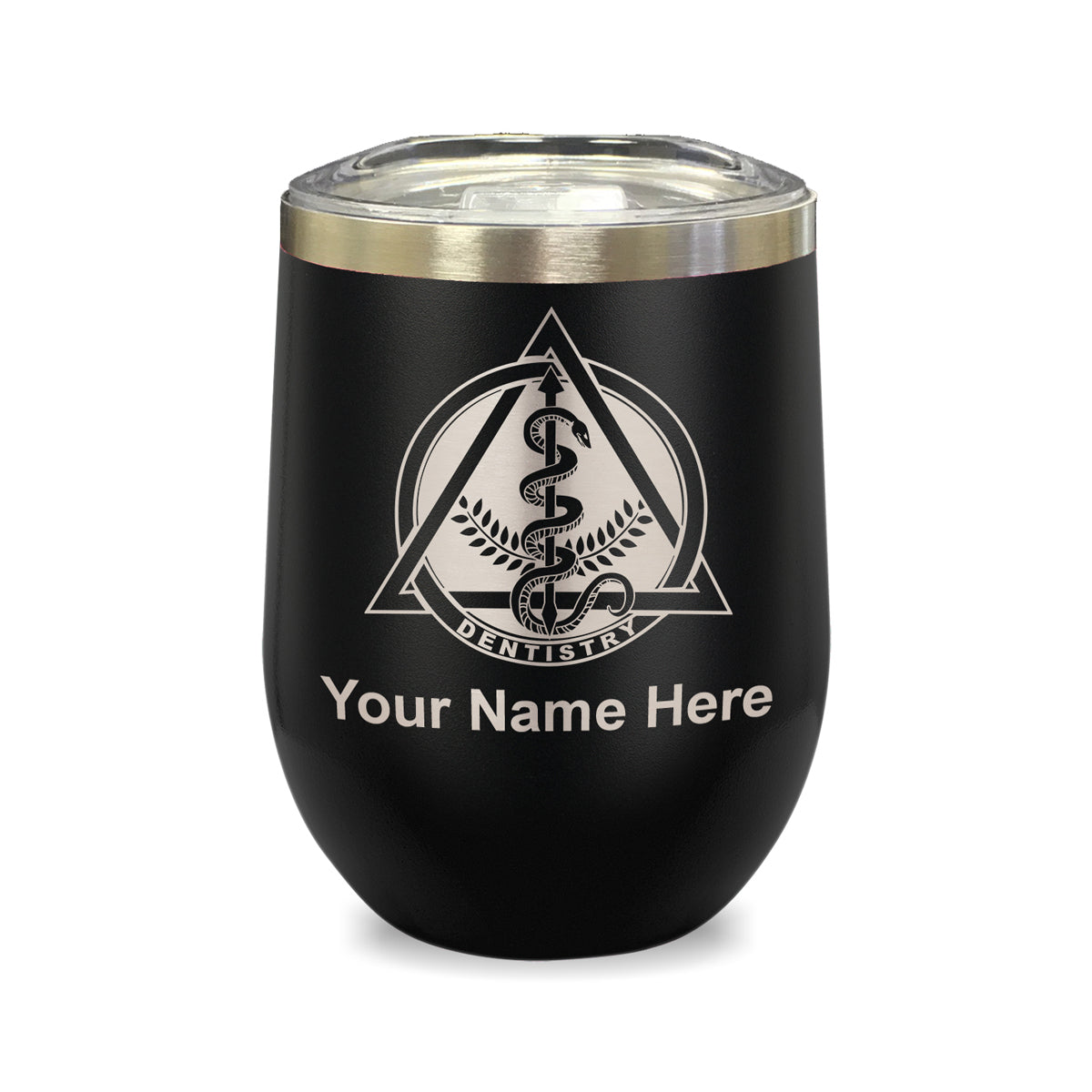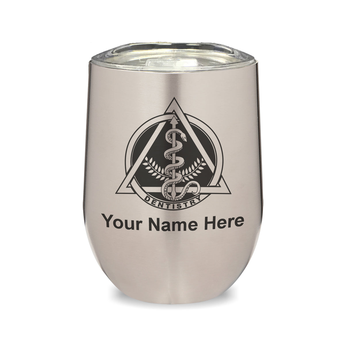 LaserGram Double Wall Stainless Steel Wine Glass, Dentist Symbol, Personalized Engraving Included